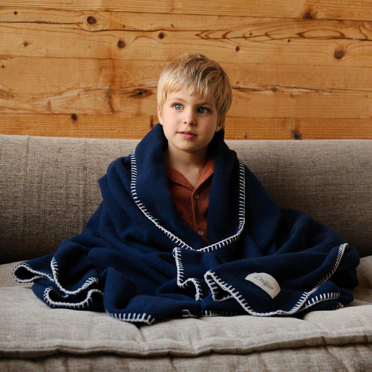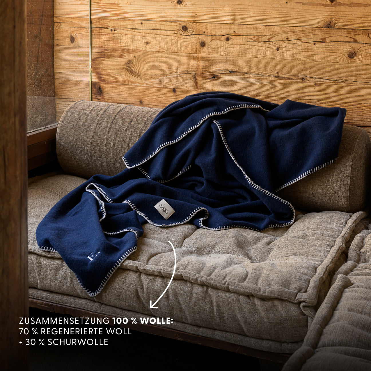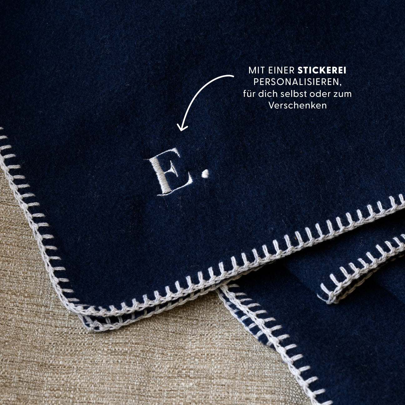 - Plaid aus recycelter Wolle mit kontrastierender Deckenstich-Kante in Grau