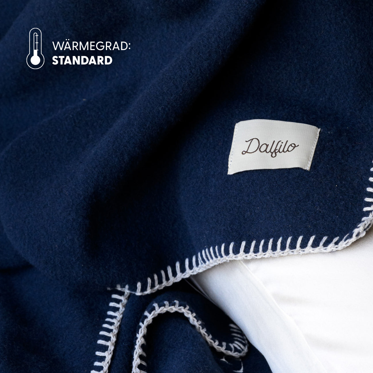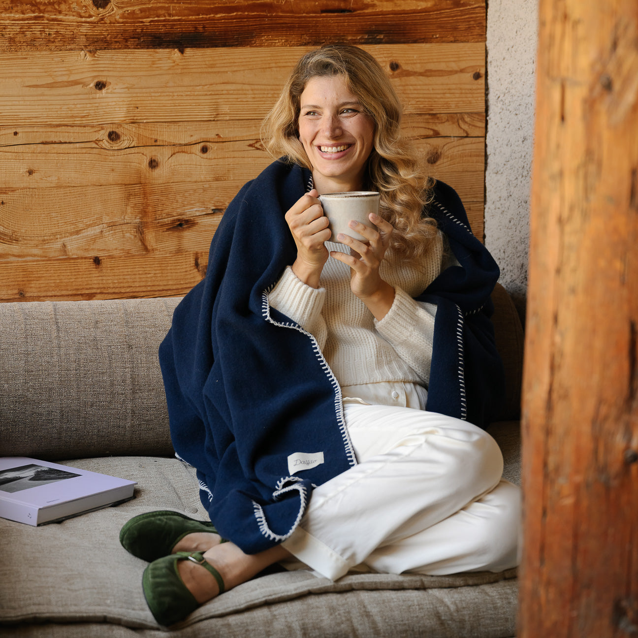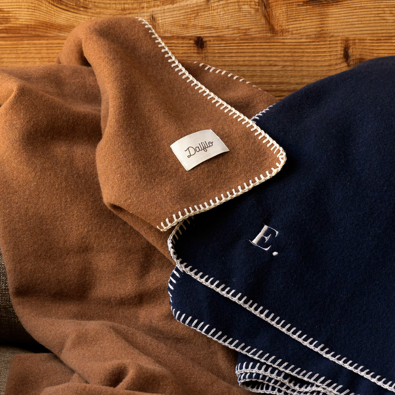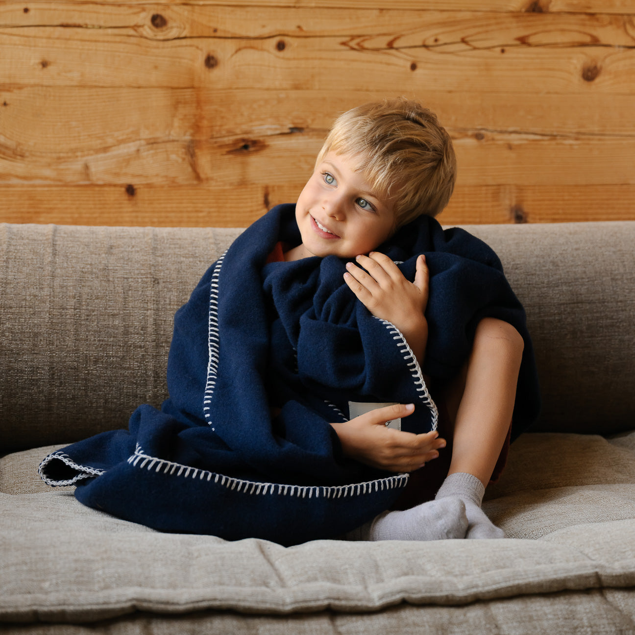 - Plaid aus recycelter Wolle mit kontrastierender Deckenstich-Kante in Grau