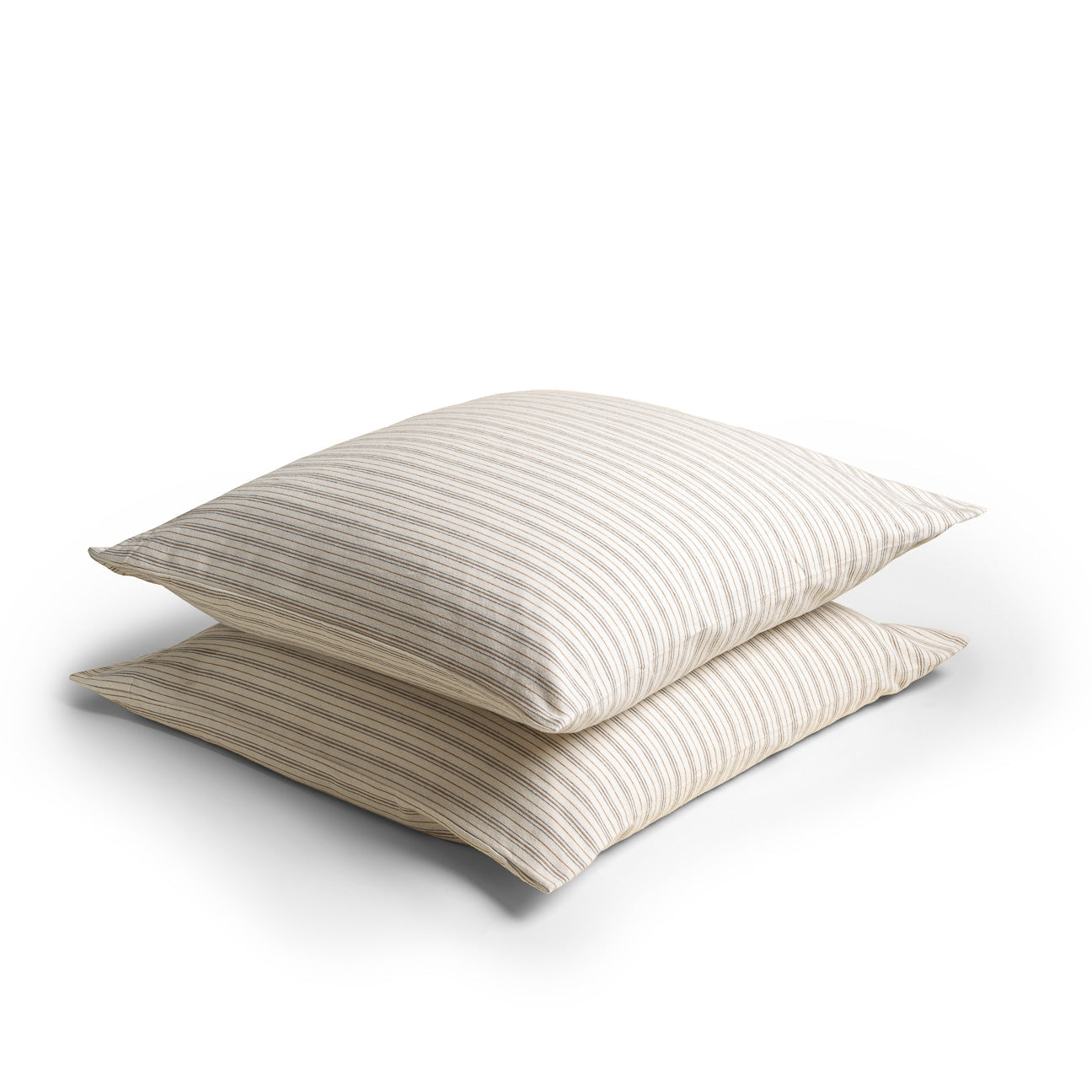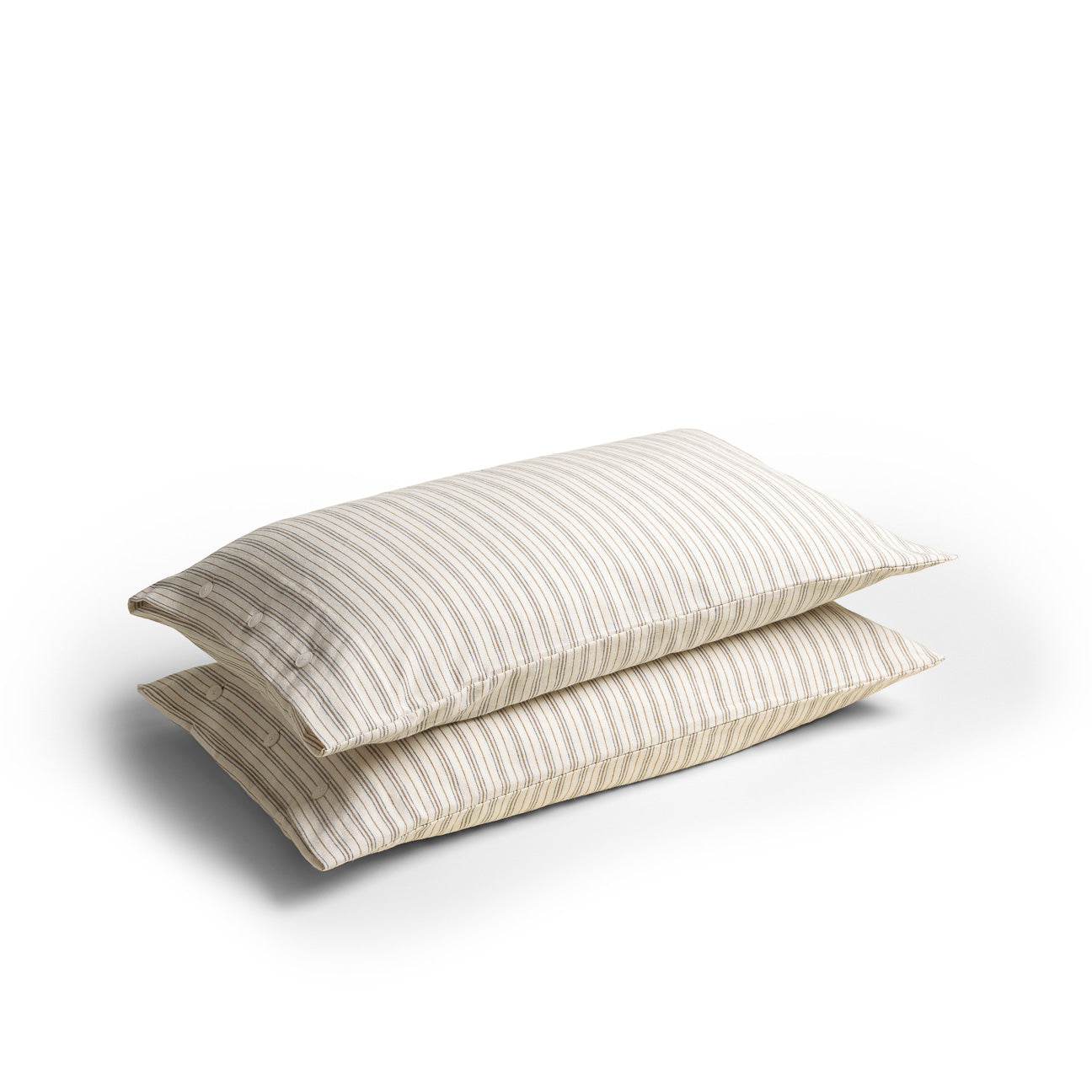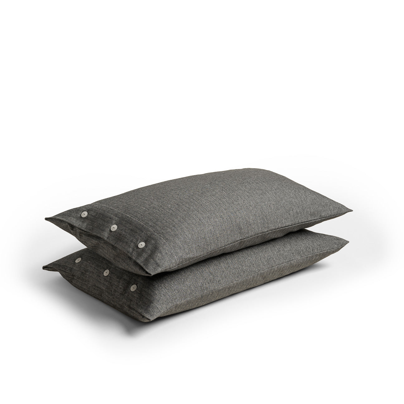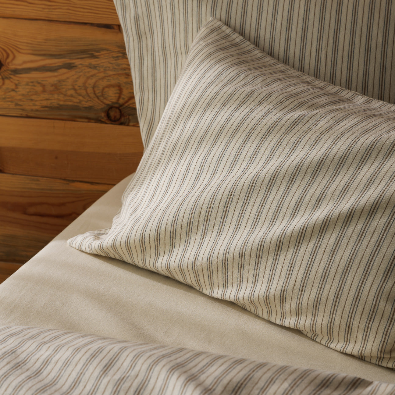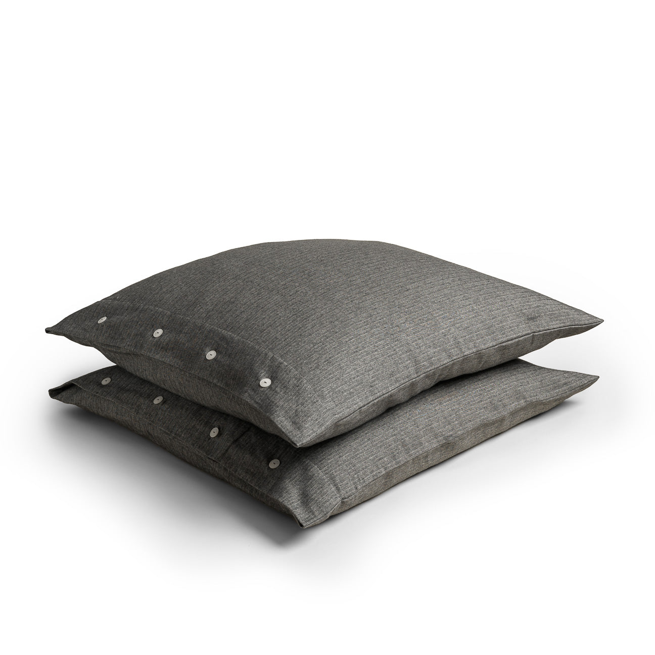 Ein hochwertiges, einzigartiges und handgefertigtes Produkt, super exklusiv und extra weich, entworfen und hergestellt in limitierter Auflage für die Saison FW 24-25. Erhältlich in zwei vielseitigen Varianten: CREMA GESTREIFT und ANTHRAZIT FISCHGRÄT, mit Knöpfen, die den Markennamen tragen, sowohl auf dem Bettbezug als auch auf den Kissenbezügen.