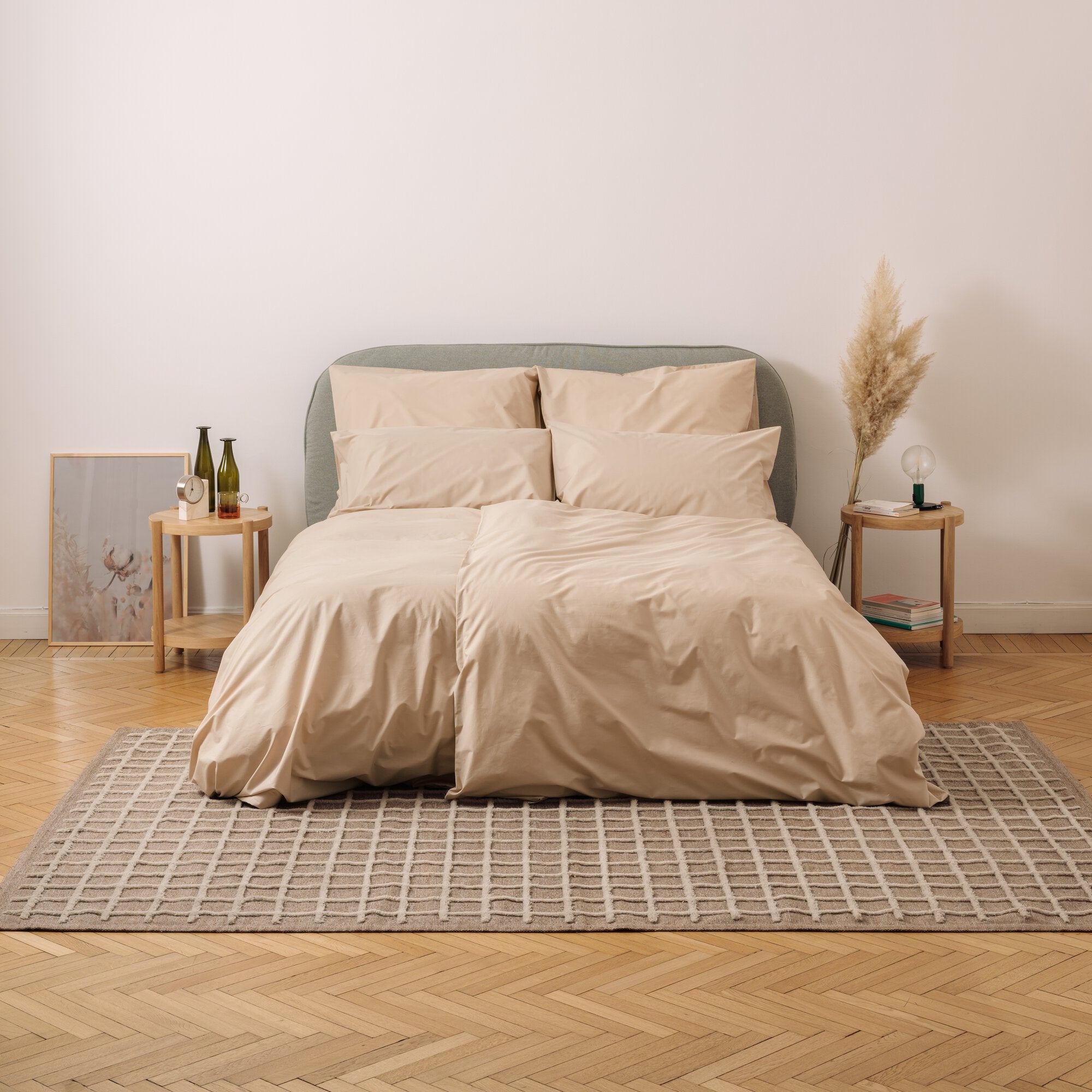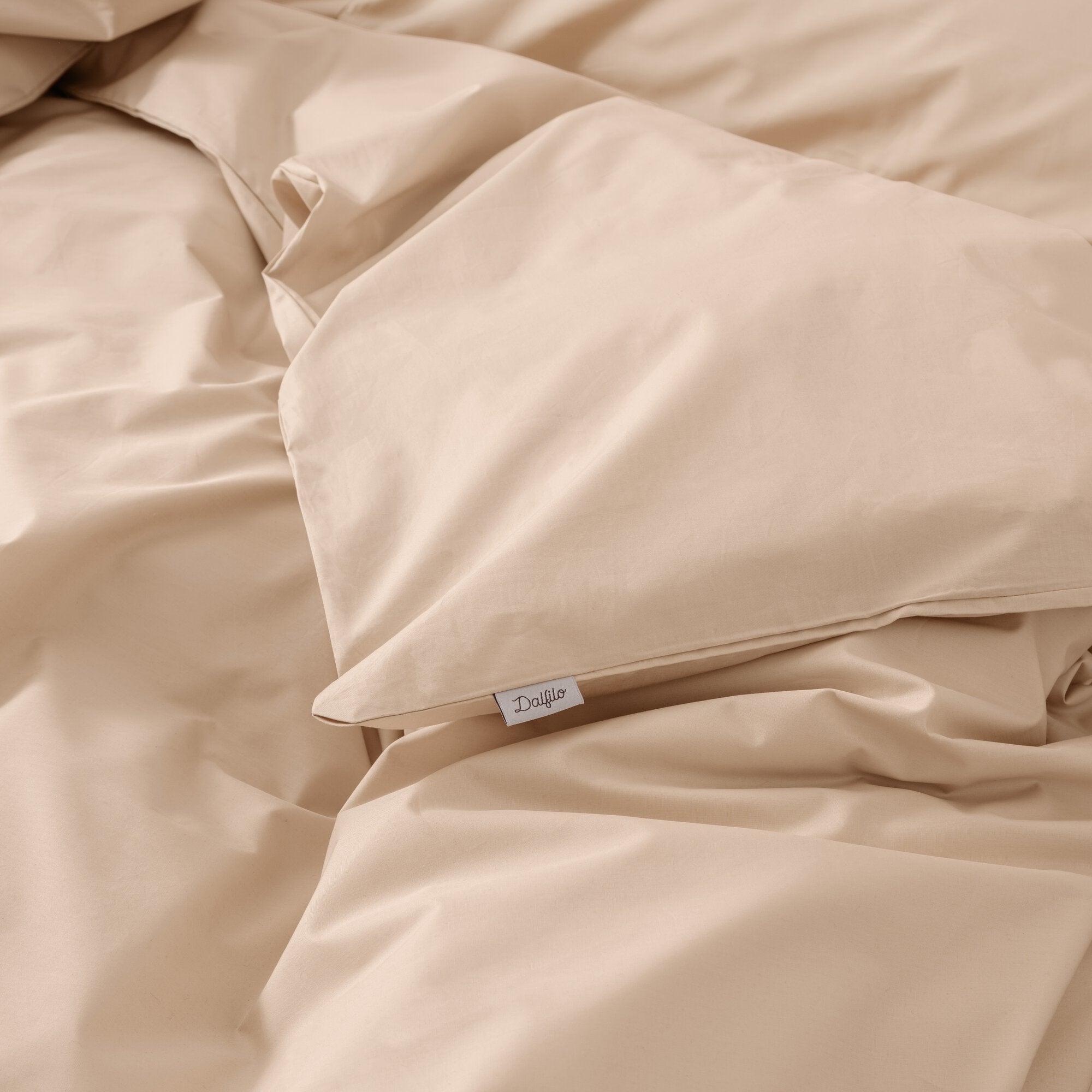 Unser Perkalstoff hat eine Fadendichte von 200 Fäden pro 2,5 cm² und besteht 100% aus Baumwolle. Durch seine Dichte ist er unglaublich weich und hält ein Leben lang. Durch sein mattes Finish ist der Stoff vielseitig und passt in jedes Schlafzimmer.