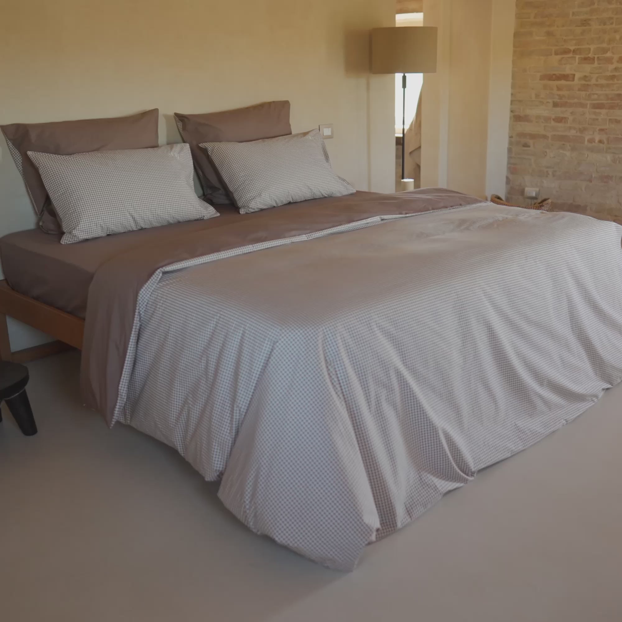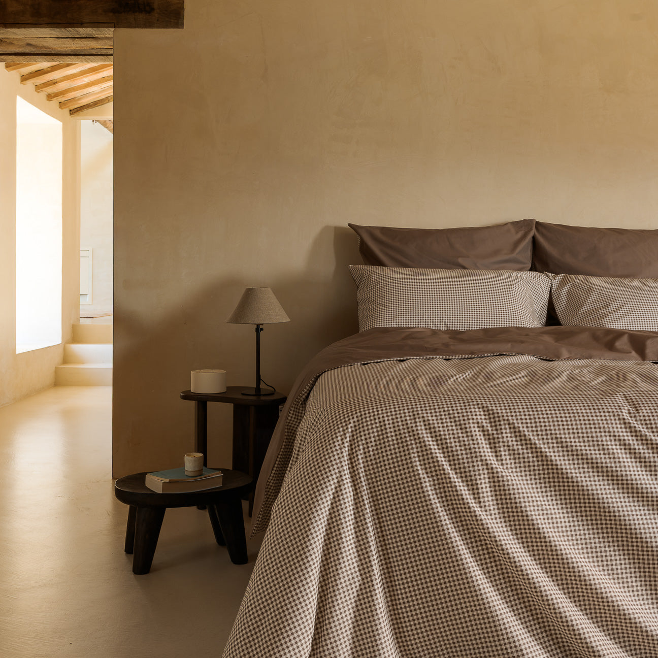 Unser Perkalstoff hat eine Fadendichte von 200 Fäden pro 2,5 cm² und besteht 100% aus Baumwolle. Durch seine Dichte ist er unglaublich weich und hält ein Leben lang. Durch sein mattes Finish ist der Stoff vielseitig und passt in jedes Schlafzimmer.