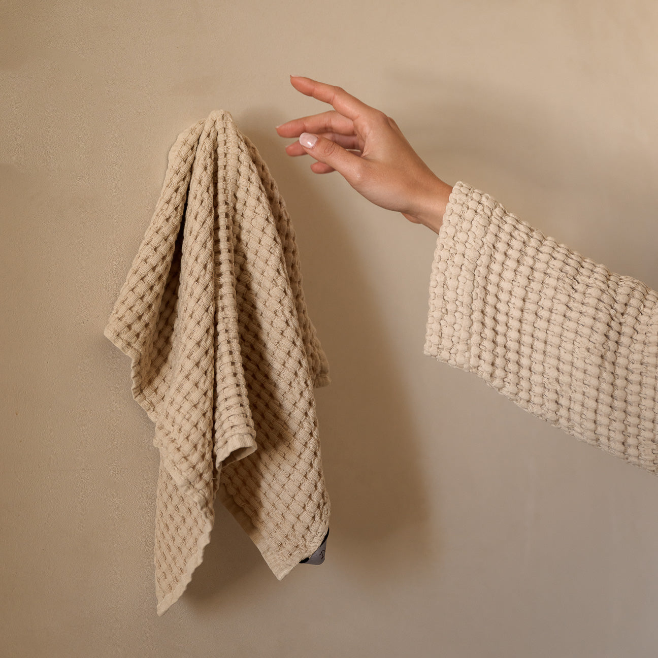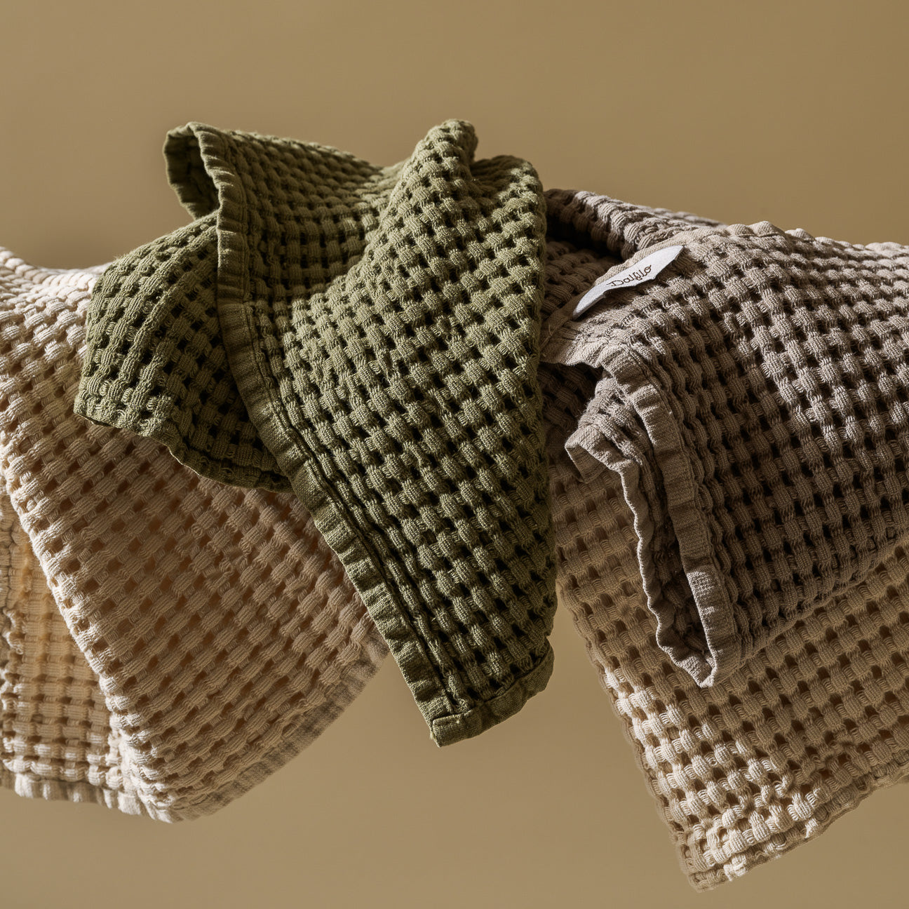- Hohe Saugfähigkeit und schnelle Trocknung dank Waffelpiqué-Struktur