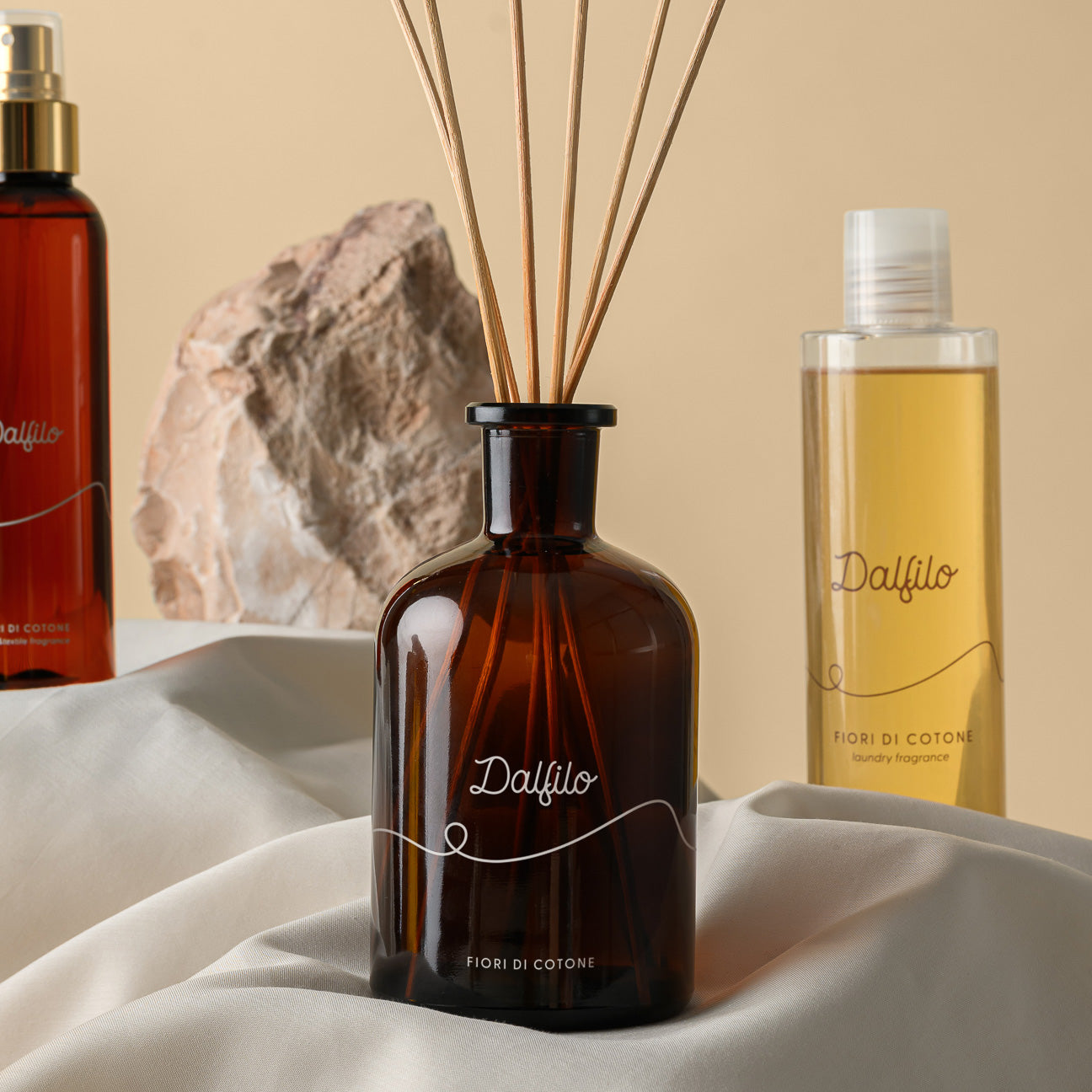 Dalfilo interpretiert das Ritual des Raumdufts neu – mit der Kollektion Duft-Accessoires: Diffusoren, Kerzen, Textilsprays sowie Duftprodukte für Schubladen und Wäsche.