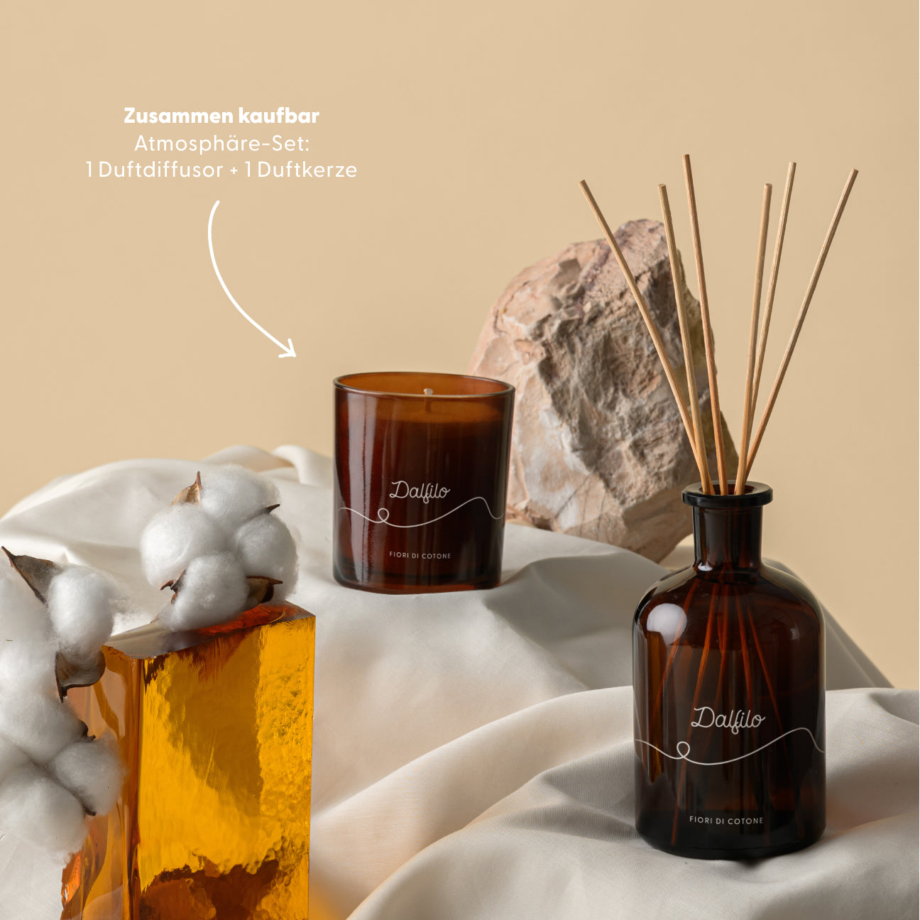 Jede Kreation vereint die Reinheit der Baumwolle mit handwerklicher Made-in-Italy-Qualität und schenkt dem Zuhause einen authentischen, eleganten und lang anhaltenden Duft.