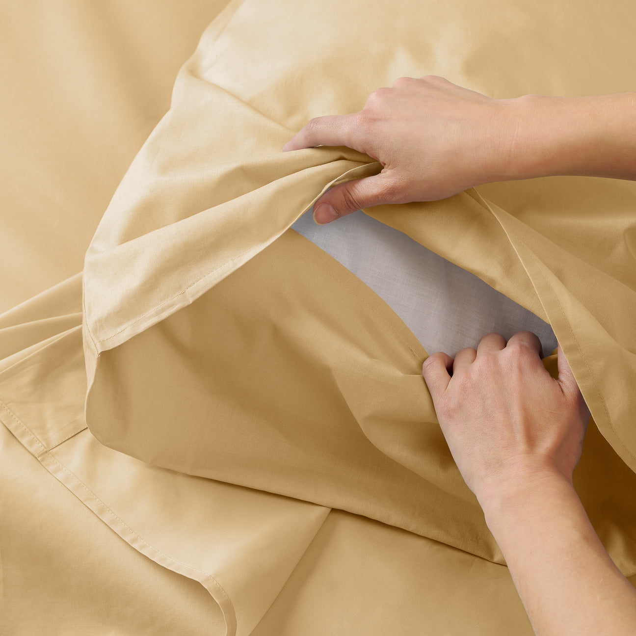 Unser Perkalstoff hat eine Fadendichte von 200 Fäden pro 2,5 cm² und besteht 100% aus Baumwolle. Durch seine Dichte ist er unglaublich weich und hält ein Leben lang. Durch sein mattes Finish ist der Stoff vielseitig und passt in jedes Schlafzimmer.