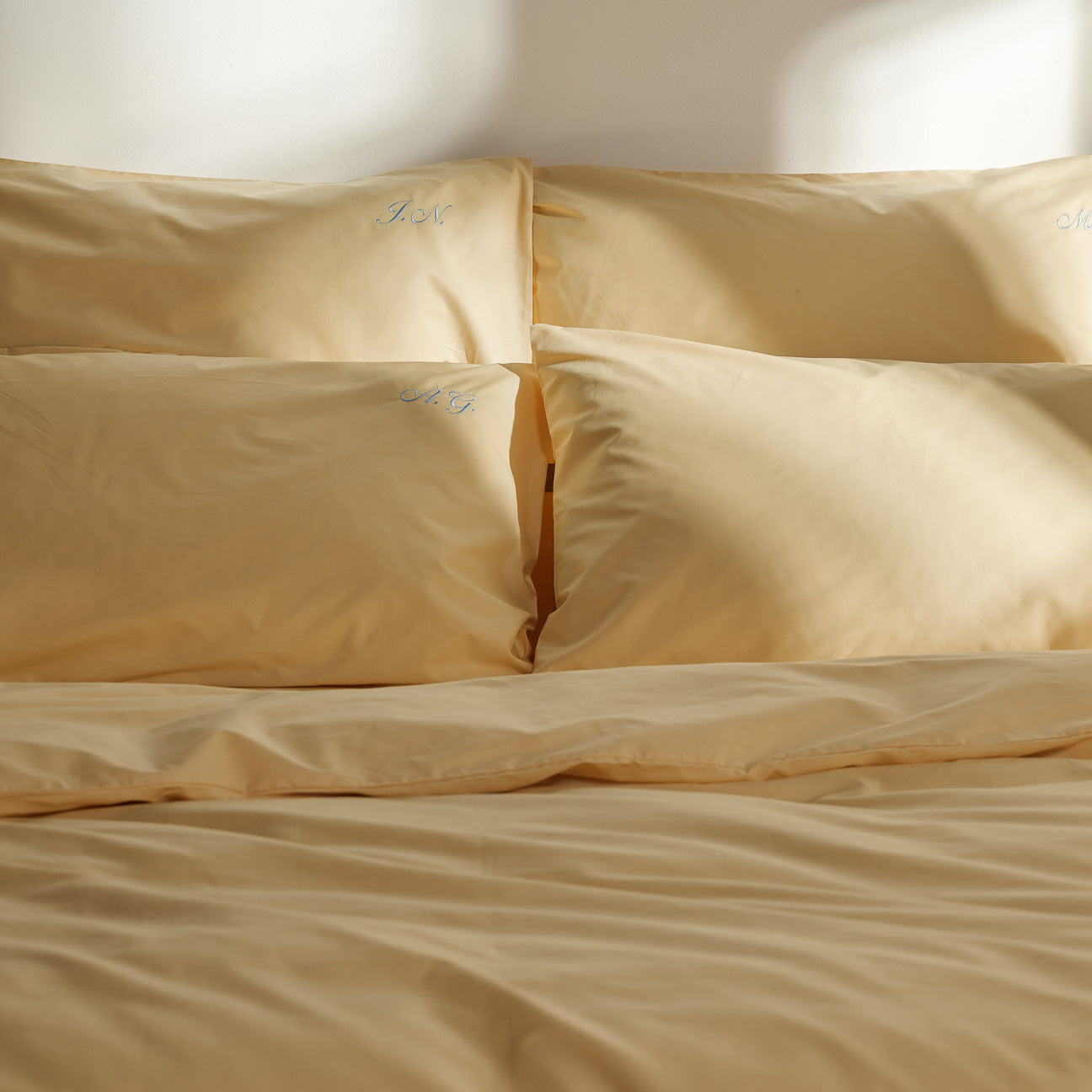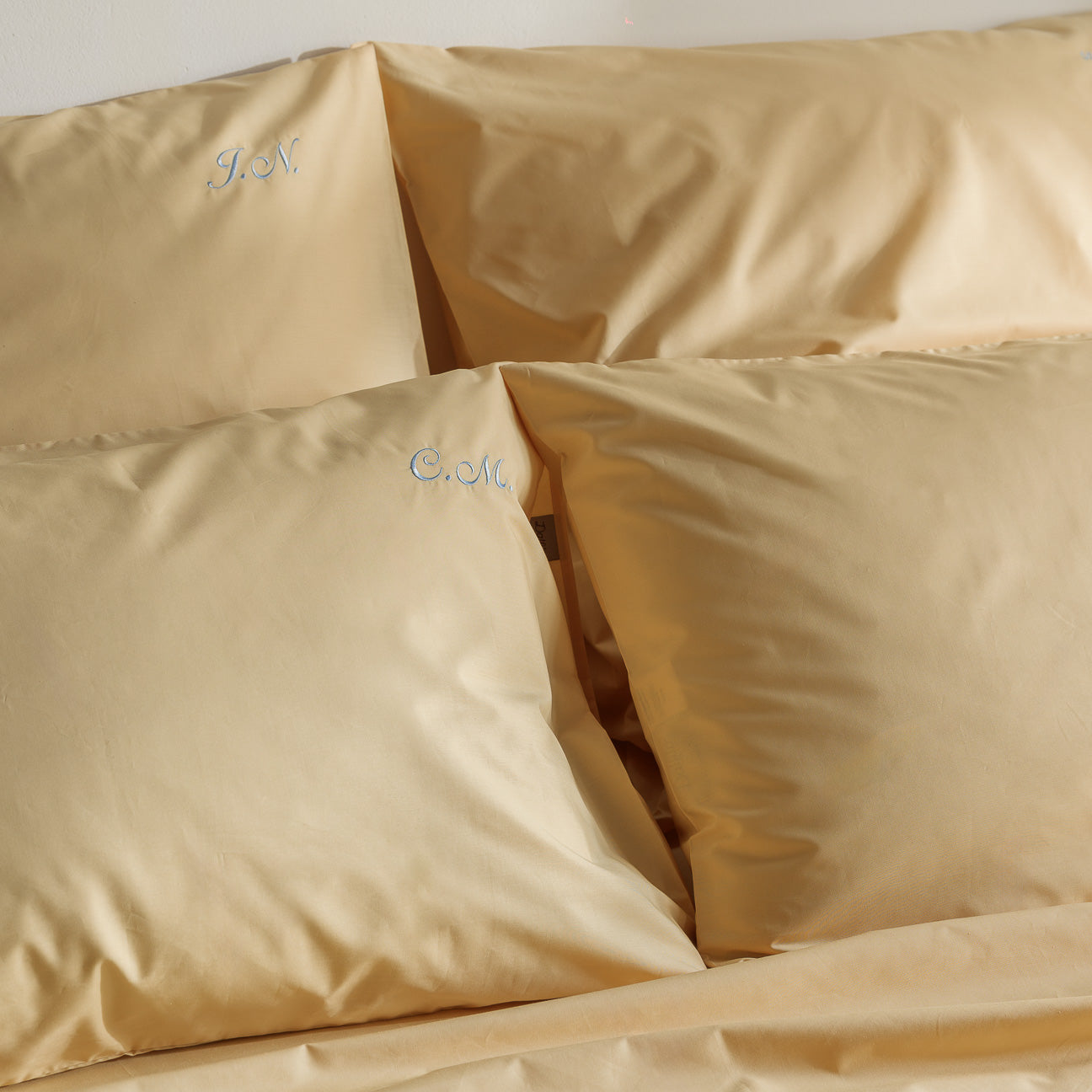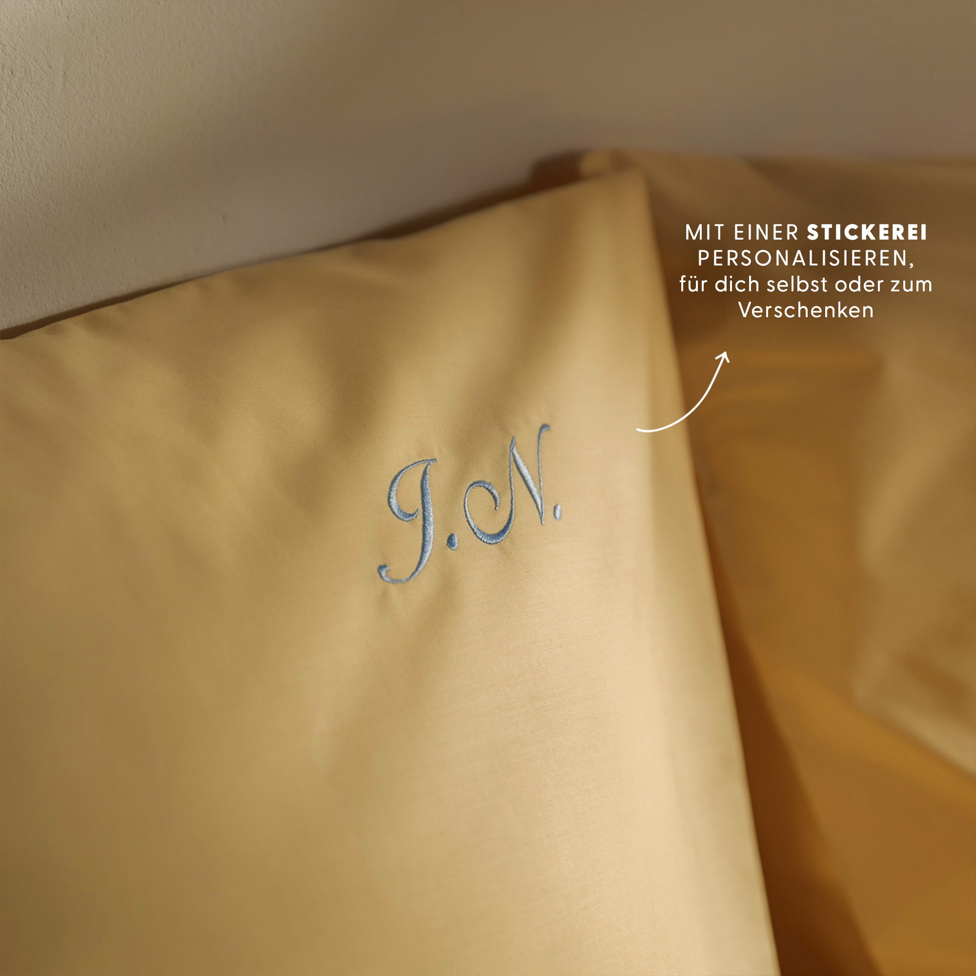 Personalisiere deine Bettwäsche mit deinen Initialen in der Garnfarbe und Schriftart deiner Wahl.