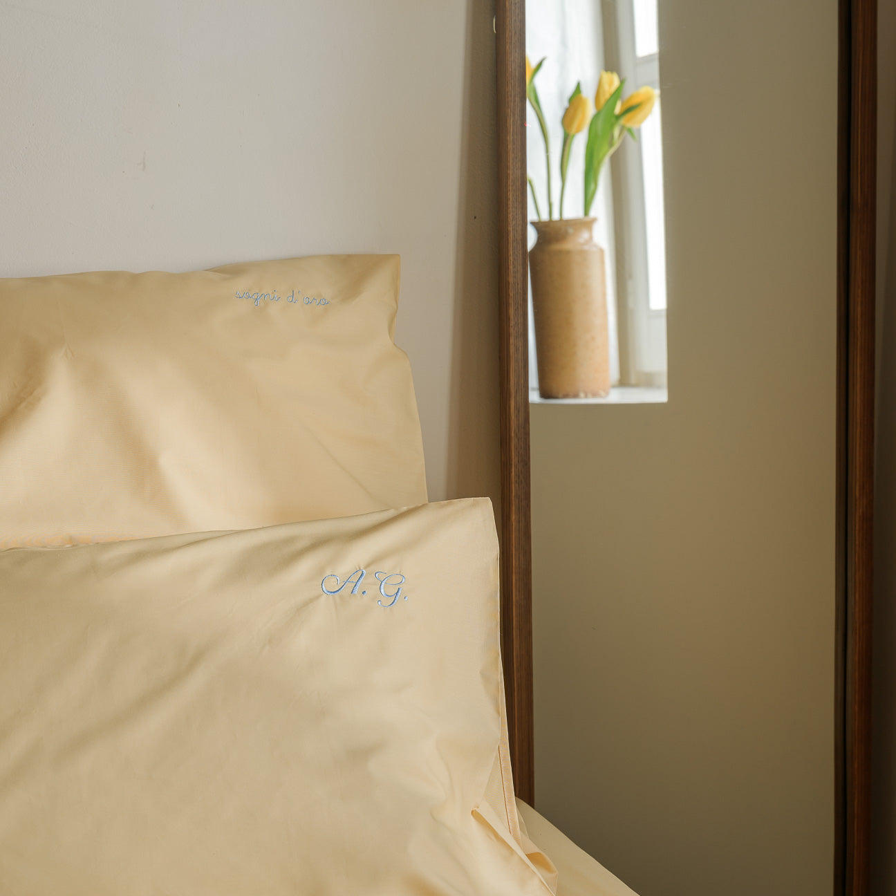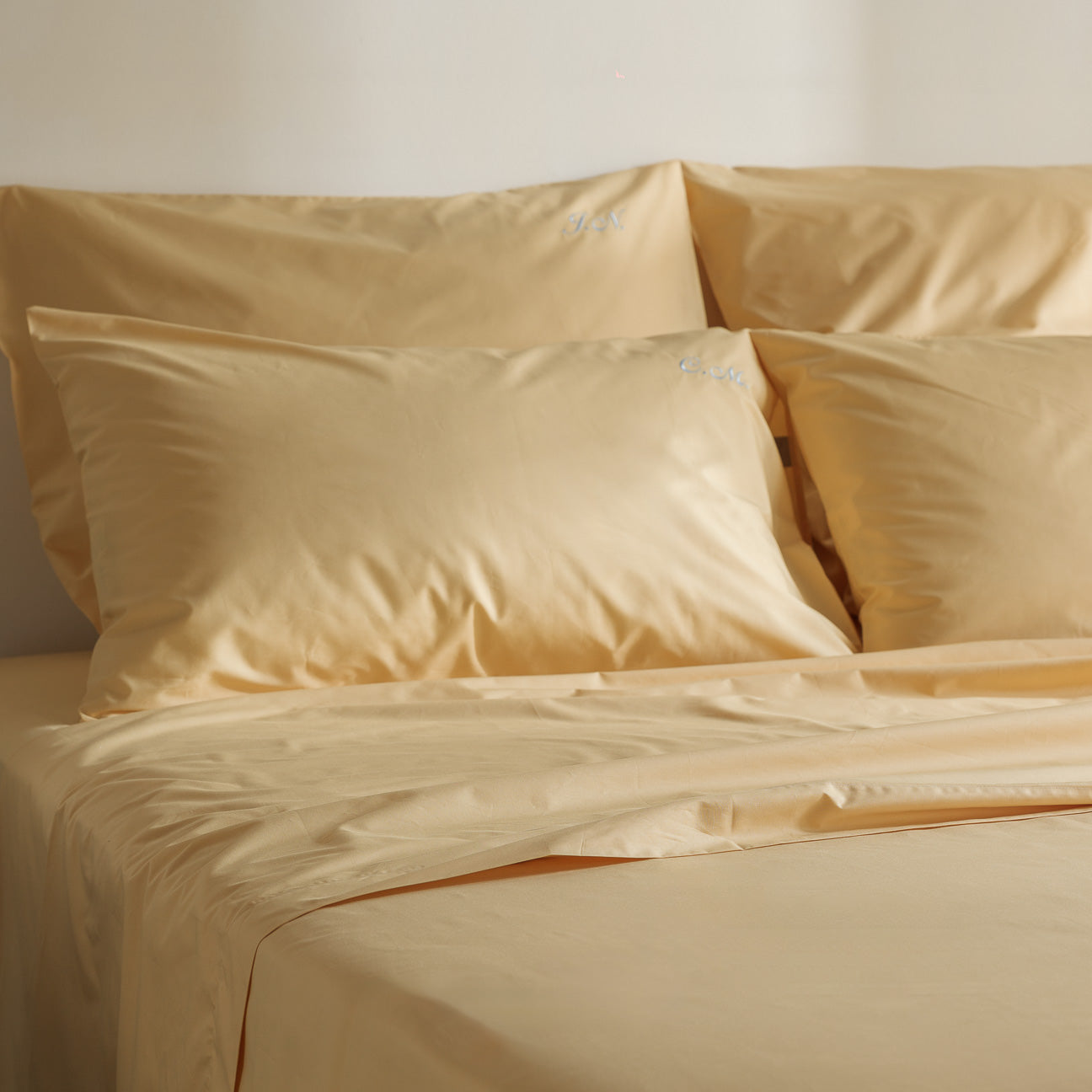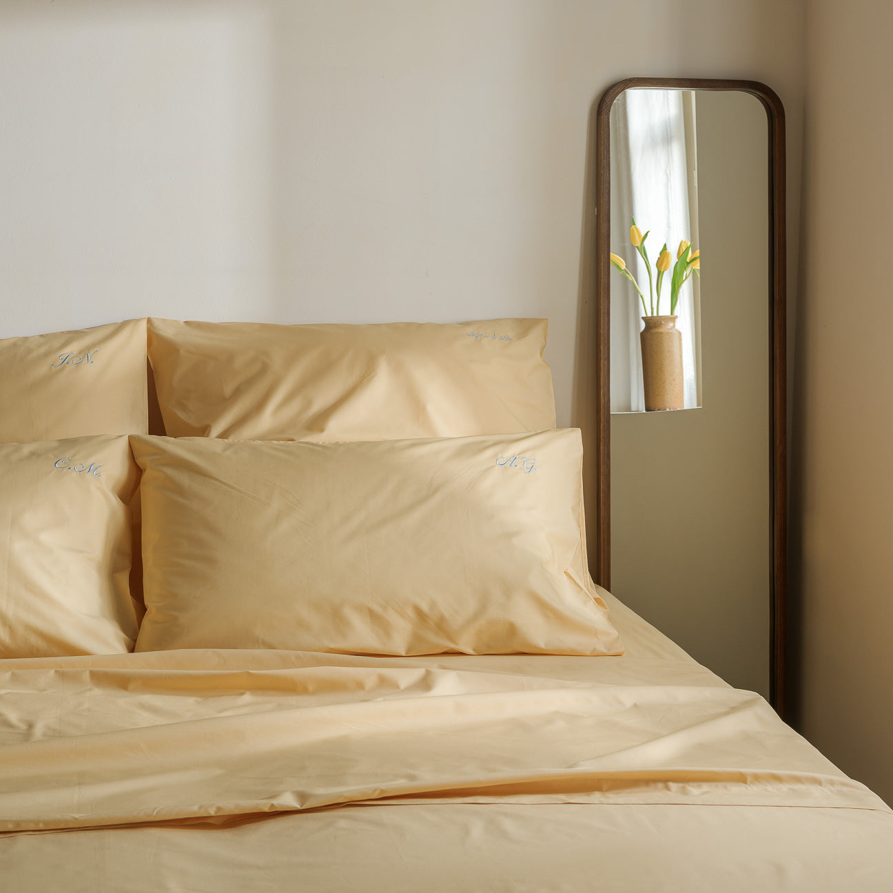 Personalisiere deine Bettwäsche mit deinen Initialen in der Garnfarbe und Schriftart deiner Wahl.