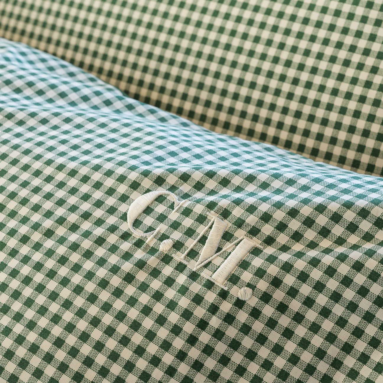 Personalisiere deine Bettwäsche mit deinen Initialen in der Garnfarbe und Schriftart deiner Wahl.