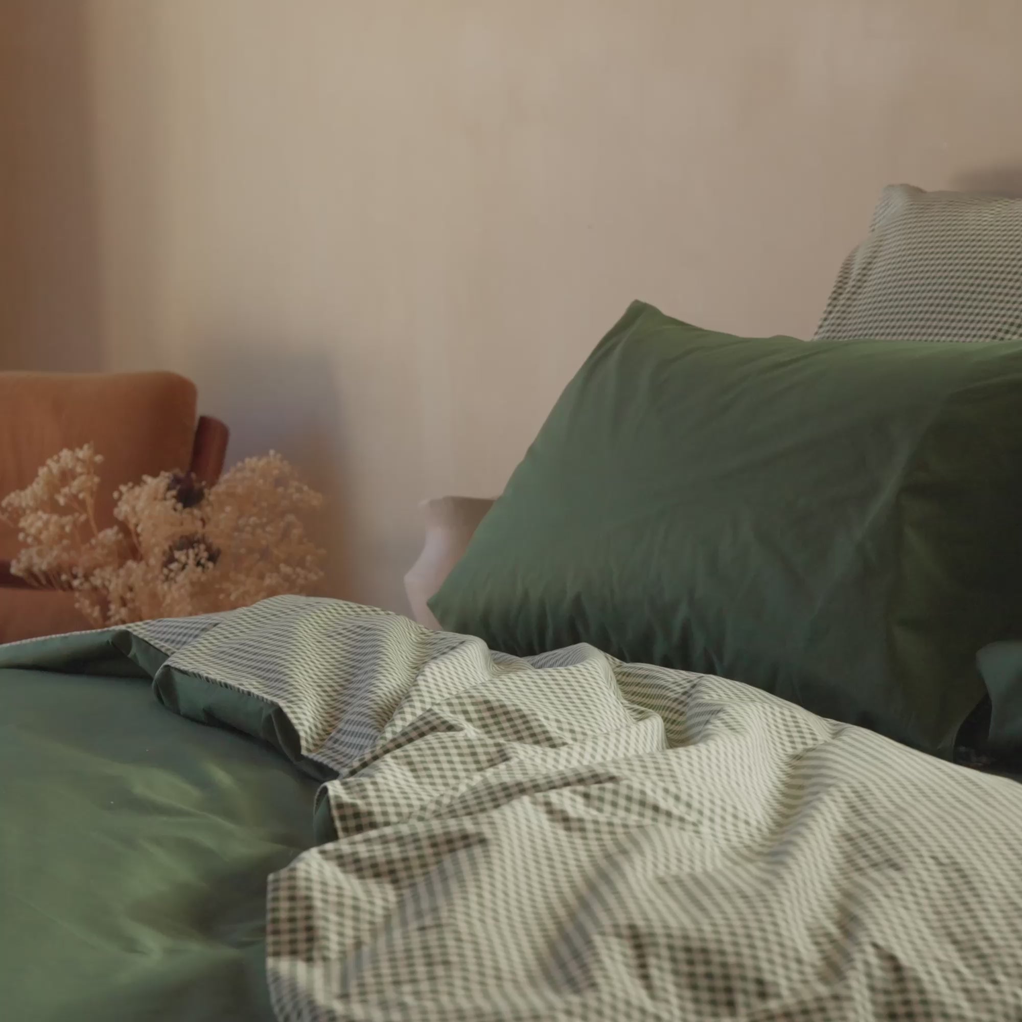 Unser Perkalstoff hat eine Fadendichte von 200 Fäden pro 2,5 cm² und besteht 100% aus Baumwolle. Durch seine Dichte ist er unglaublich weich und hält ein Leben lang. Durch sein mattes Finish ist der Stoff vielseitig und passt in jedes Schlafzimmer.