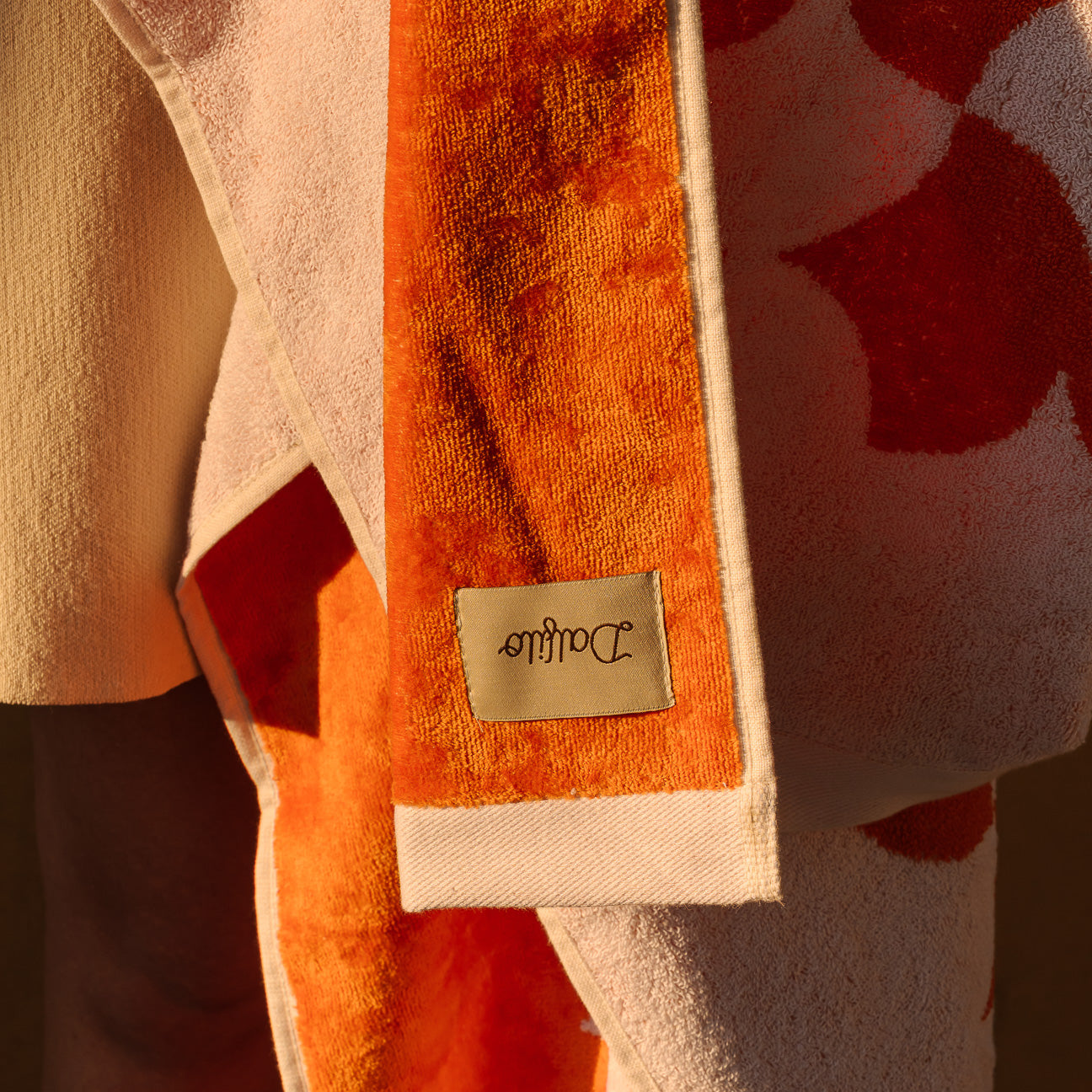Jedes Teil der Dalfilo-Strandlinie entsteht am Webstuhl – aus dem Zusammenspiel von weißen und farbigen Garnen, garngefärbt mit der IDH-Technik für maximale Beständigkeit gegen Sonne, Chlor, Witterungseinflüsse und häufiges Waschen.