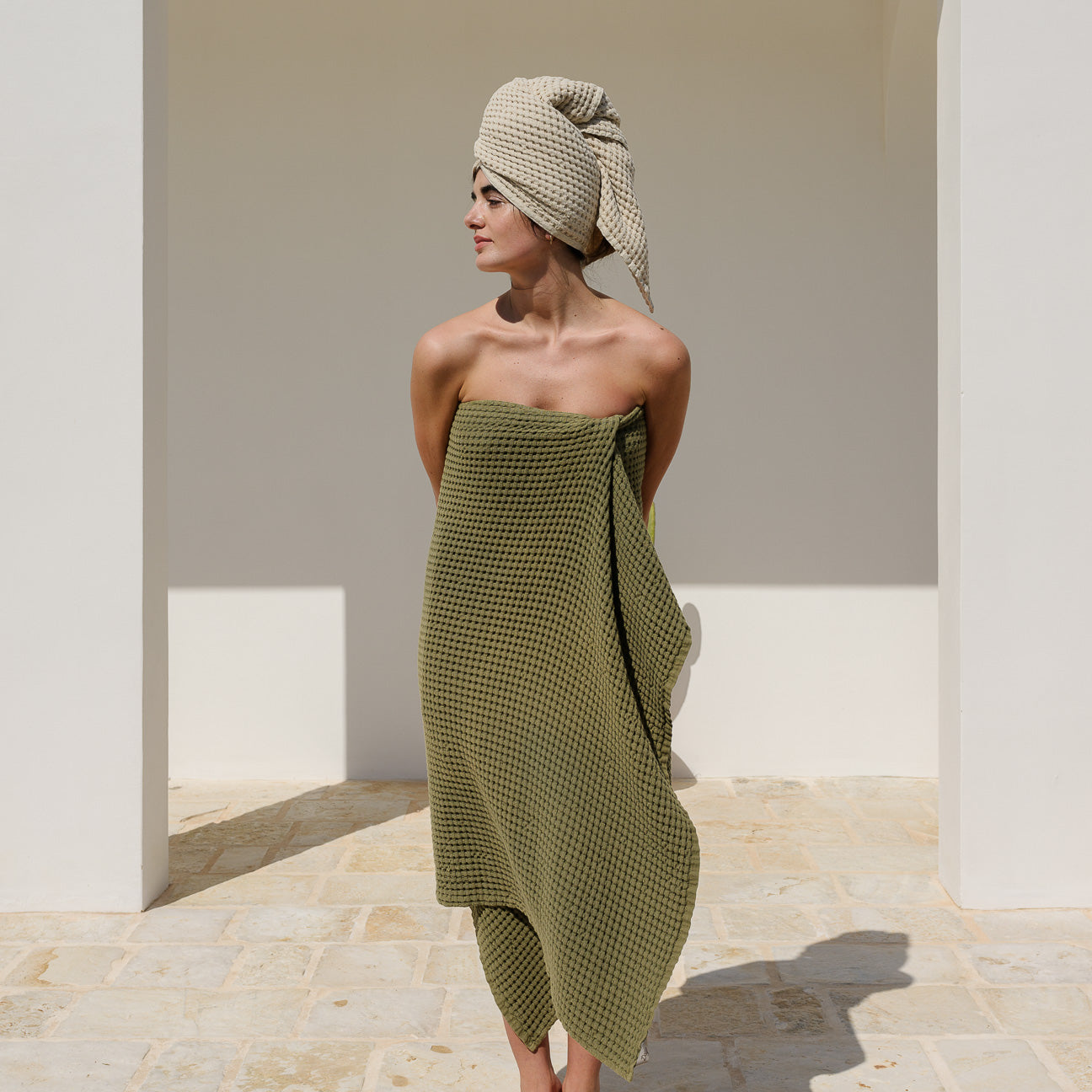 - Hohe Saugfähigkeit und schnelles Trocknen dank der Waffelpiqué-Struktur