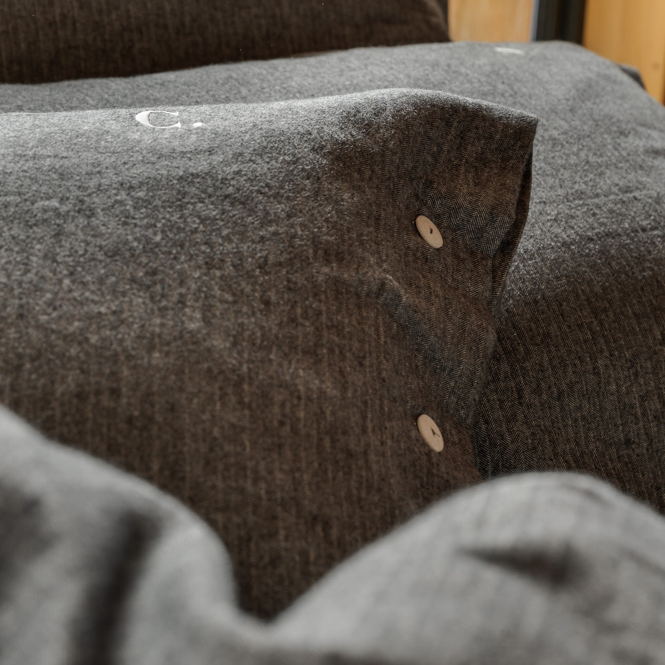 Unsere Flanell-Designs vereinen Wärme mit zeitloser Eleganz. Die Variante Creme zeichnet sich durch edle Streifen in Braun und Blau aus, während Antrazit ein elegantes Fischgrätmuster zeigt, das durch die Kombination von cremefarbenen und anthrazitfarbenen Garnen entsteht. Beide Designs sind aus garngefärbtem Baumwollgewebe gefertigt und garantieren Farbtiefe und Langlebigkeit, die über Jahre hinweg Bestand haben.