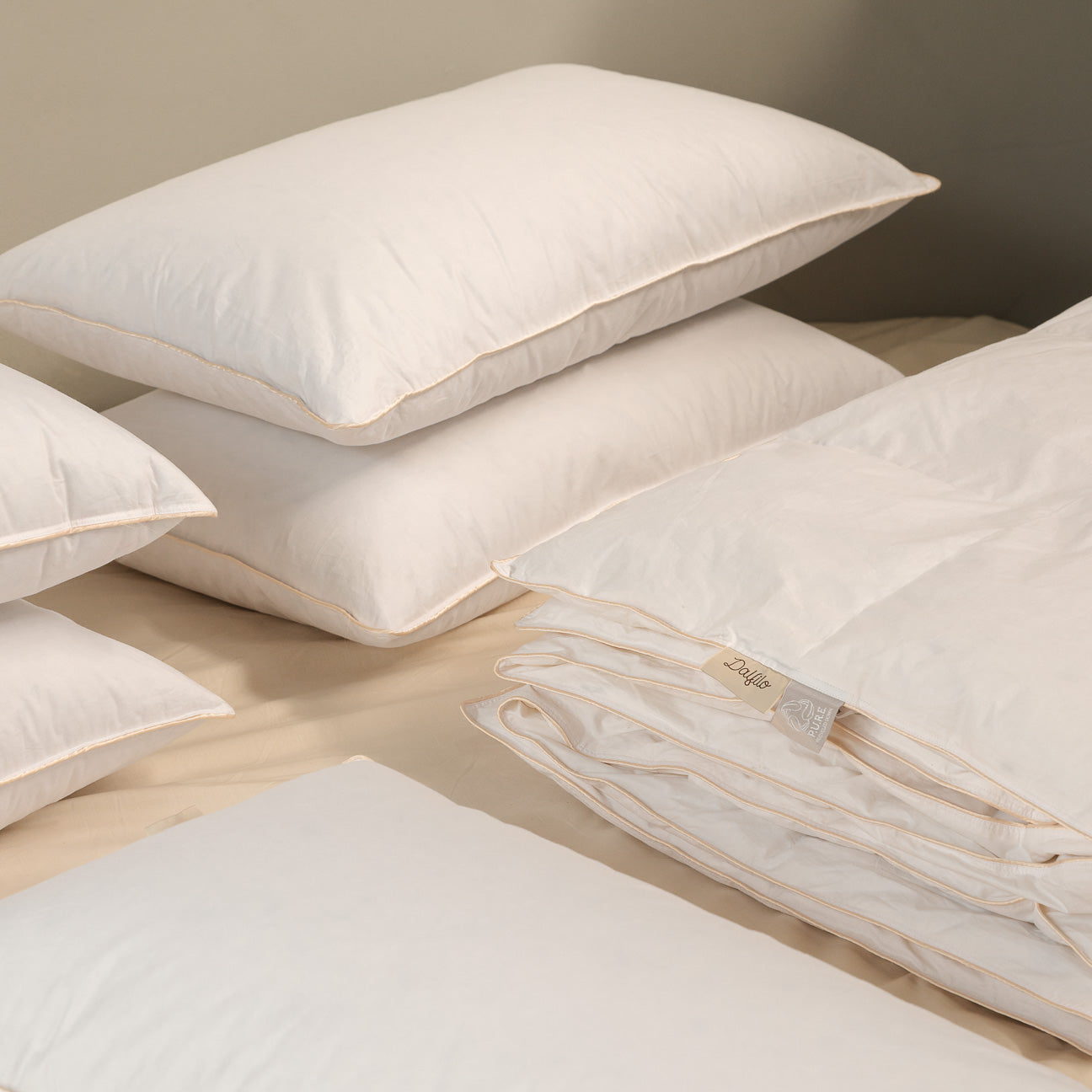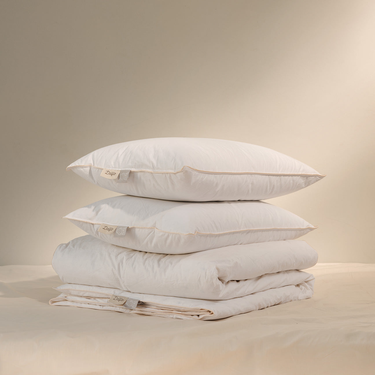Entdecke unsere Gänsedaunen-Kollektion. Unsere Kopfkissen und warmen Doppelbettdecken garantieren eine optimale Nachtruhe.
