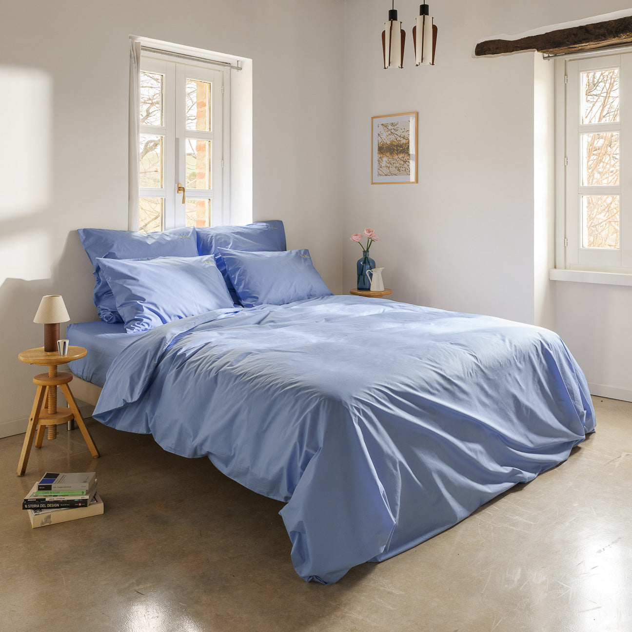 Our percale fabric has a thread count of 210 threads per 2.5 cm² and is made from 100% cotton. Its density makes it incredibly soft and will last a lifetime. Its matte finish makes the fabric versatile and fits into any bedroom.