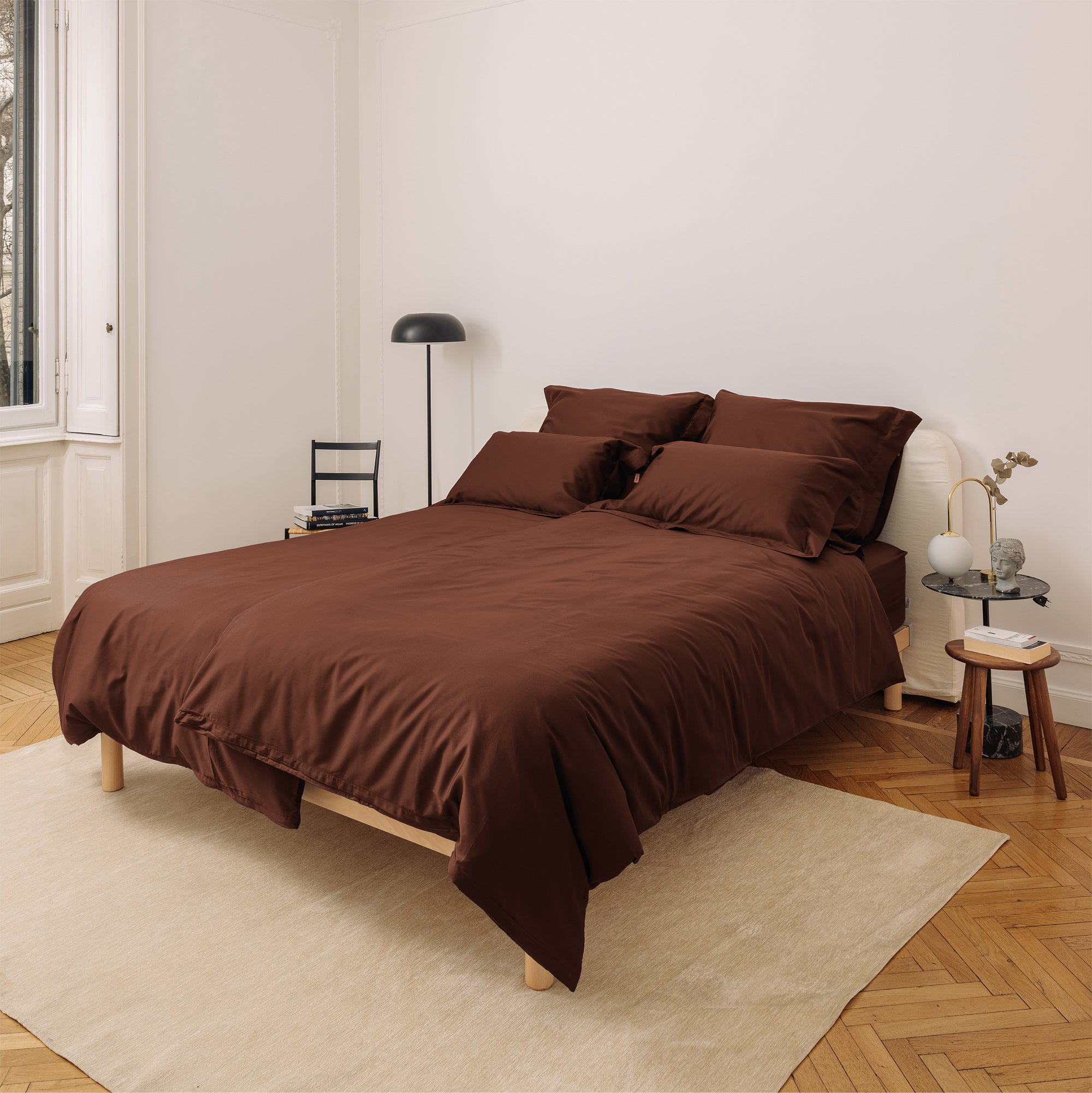Our satin fabric has a thread count of 300 threads per 2.5 cm². Its density and special weave give this luxurious fabric its characteristic bright shine and softness. Its shiny finish brings that luxury feeling to your bedroom.
