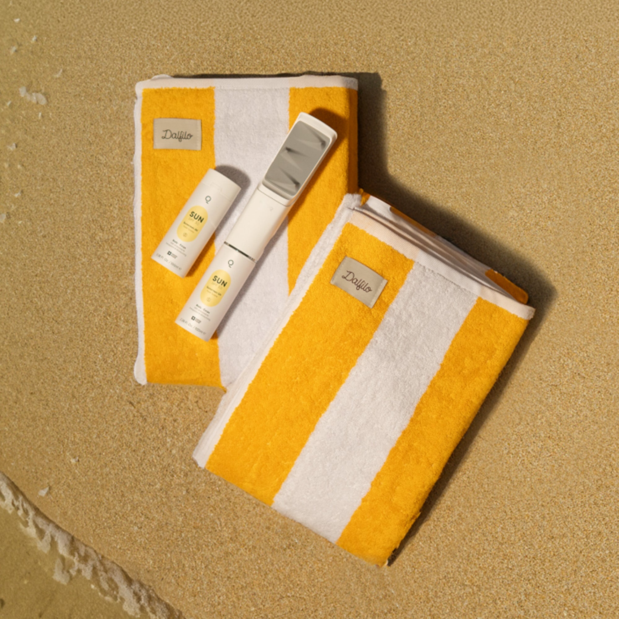 IONIQs innovative Tanningtechnologie trifft auf Dalfilos trendige, zeitlose Portofino-Strandtücher – eine perfekte Kombination für den Sommer!