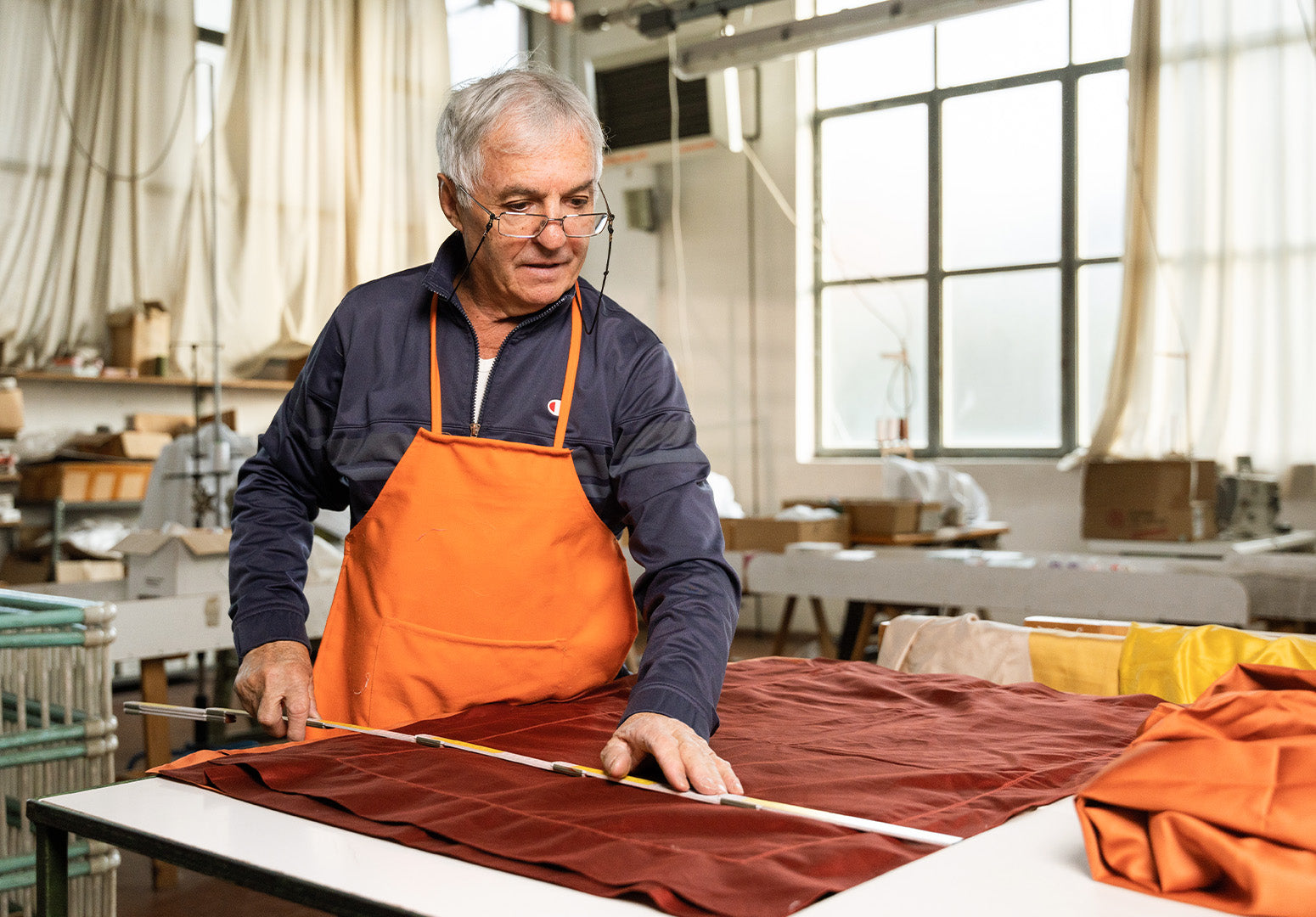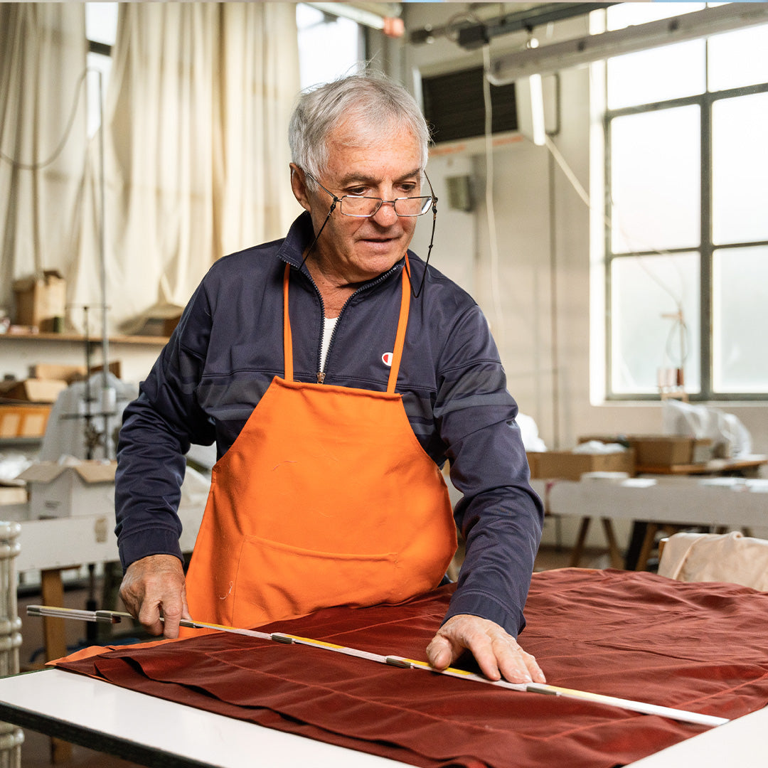 An die Stadt Bergamo erinnert man sich weltweit traurigerweise dafür, was während der Pandemie geschah. Nur wenige wissen, dass es in der Nähe von Bergamo ein Tal gibt, welches eines der besten Textizentren Italiens bildet, das Val Gandino. Hier wurde Dalfilo im Jahr 2021 geboren, und hier werden unsere Produkte entworfen, gewebt und genäht.