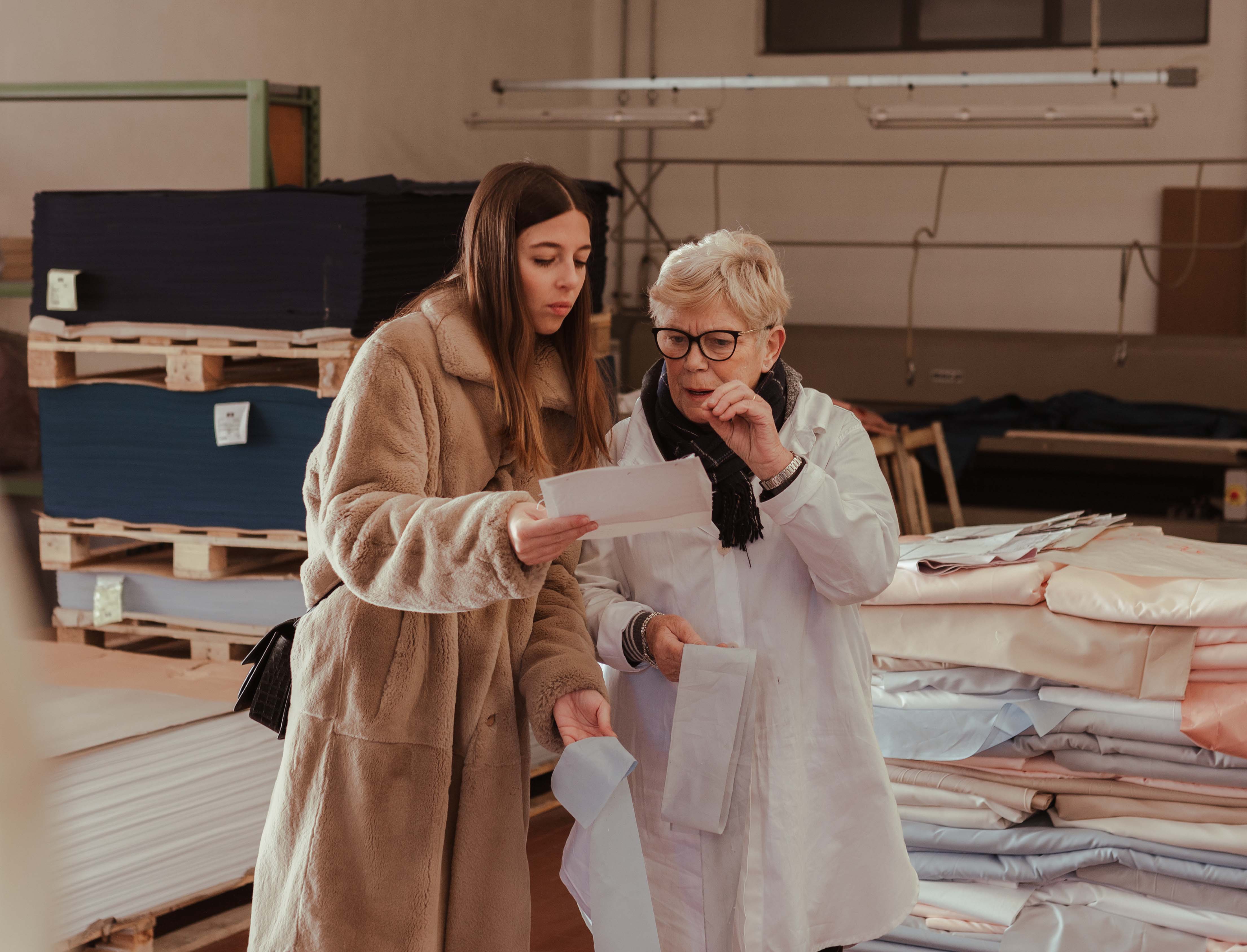 Die weltweite Pandemie stürzte das gesamte Gastgewerbe in die Krise. Seit vielen Jahren hatten unsere NäherInnen die besten Hotels in Italien mit Bettwäsche versorgt. Nun waren sie plötzlich vergessen. Aber nicht von zwei Freunden. Matteo und Davide fragten sich: "Warum sollten nur Hotels Zugang zu solch hochwertigen Bettwaren haben? So wurde Dalfilo im Jahr 2020 geboren. Jetzt sind die Dalfilo Produkte auch in der Schweiz verfügbar und können mit einem Klick bestellt werden.