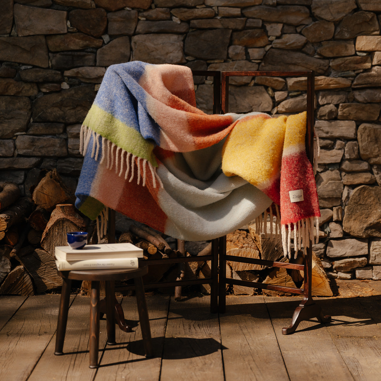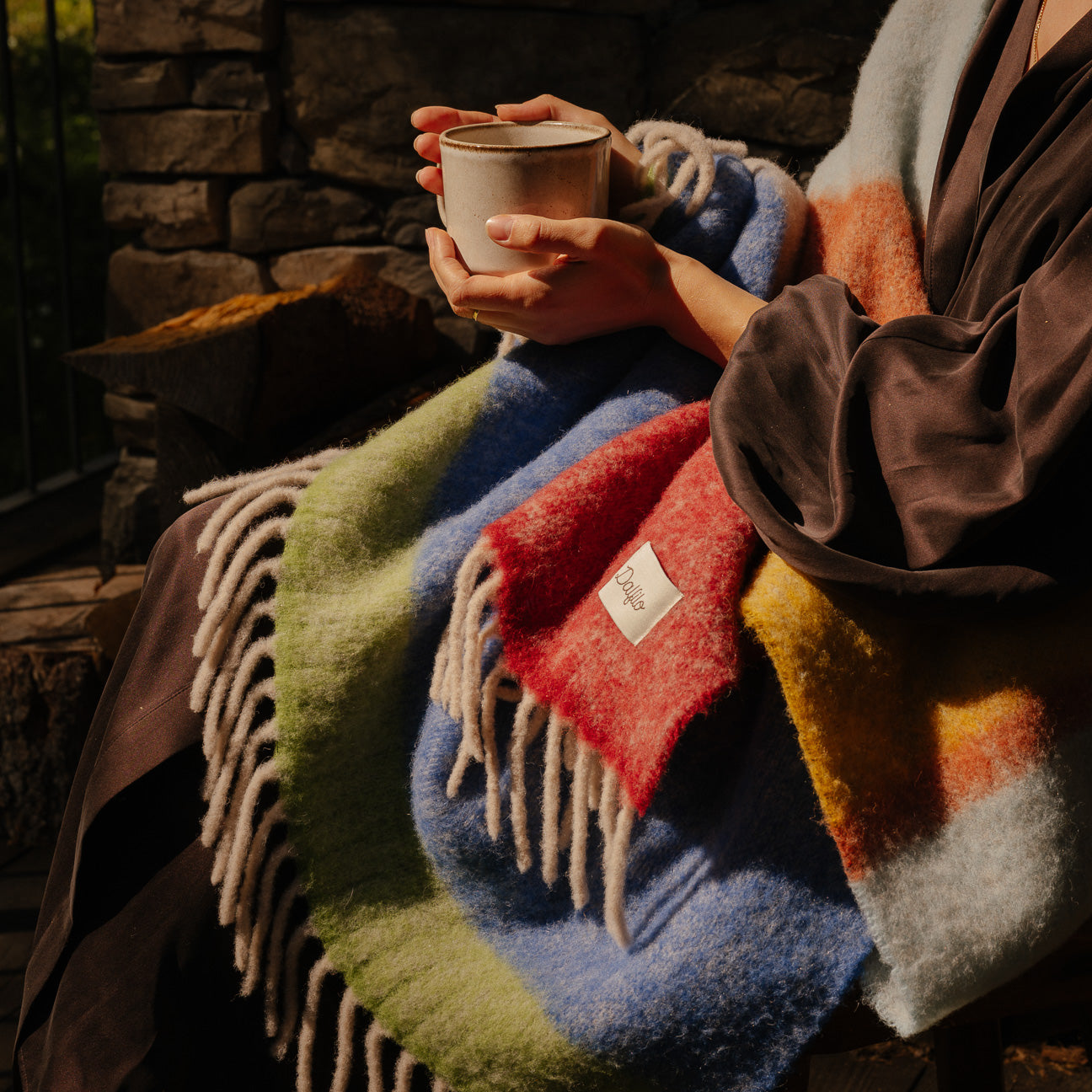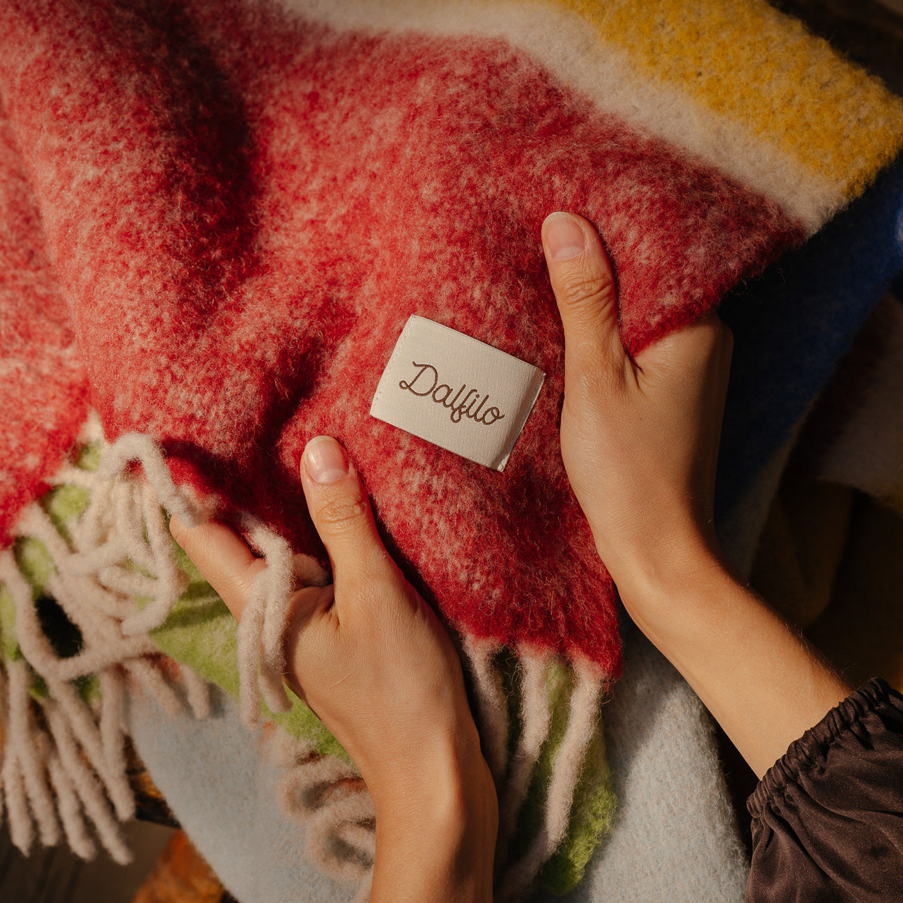 Aus der Verflechtung von acht Farbtönen entsteht die Dalfilo Alpaka-Wolldecke: eine leichte Faser, die selbst die kältesten Tage mit der Lebendigkeit der Farbe erwärmt.
