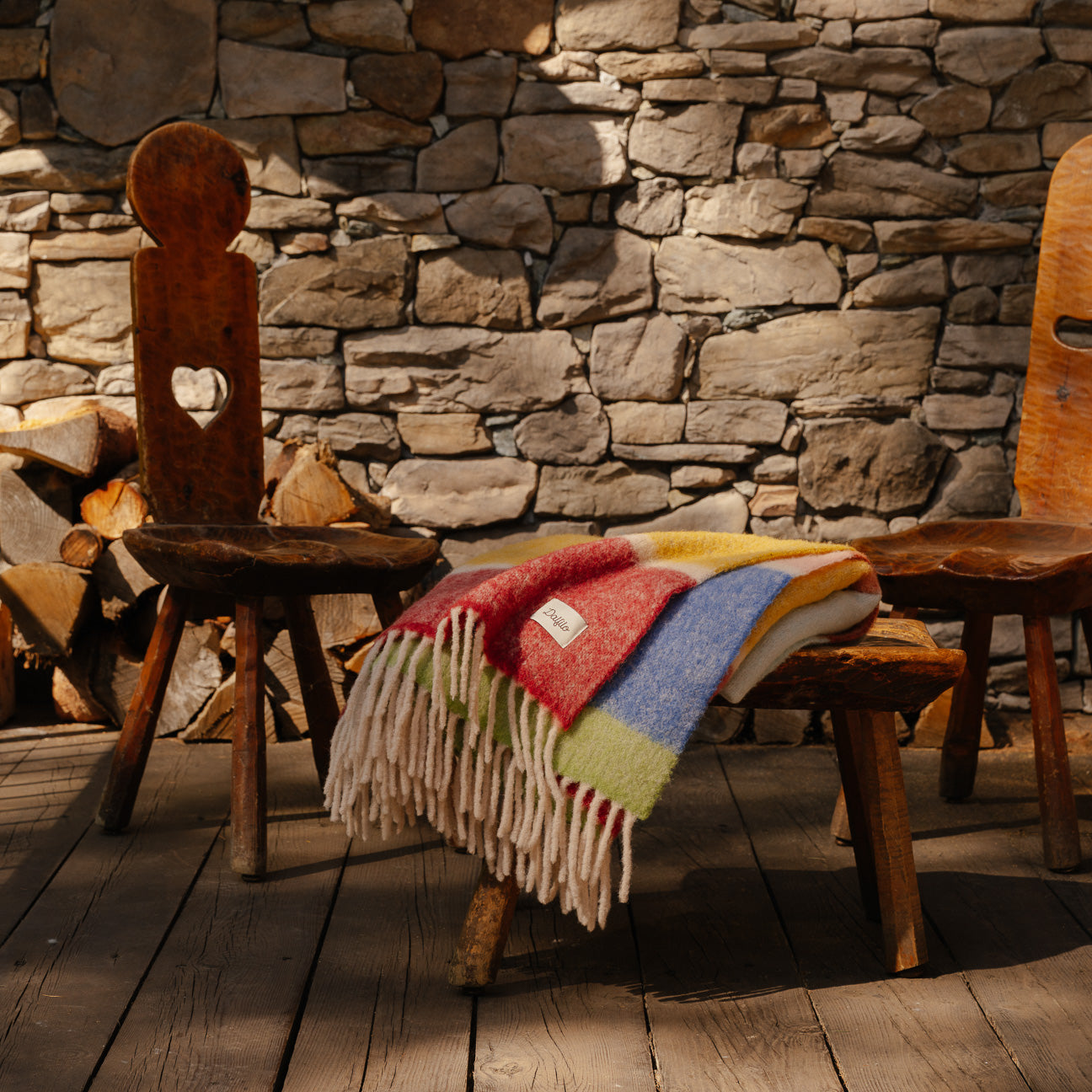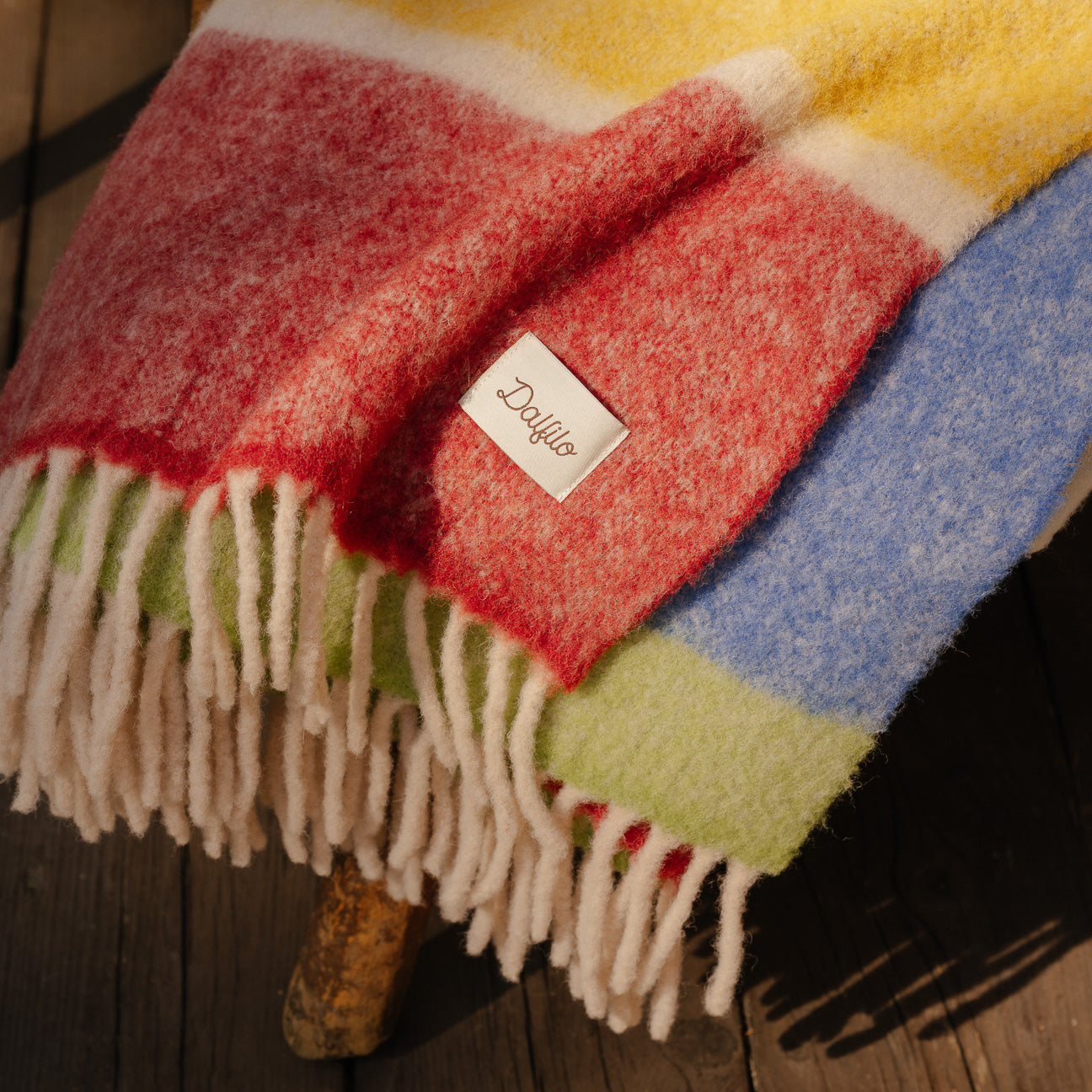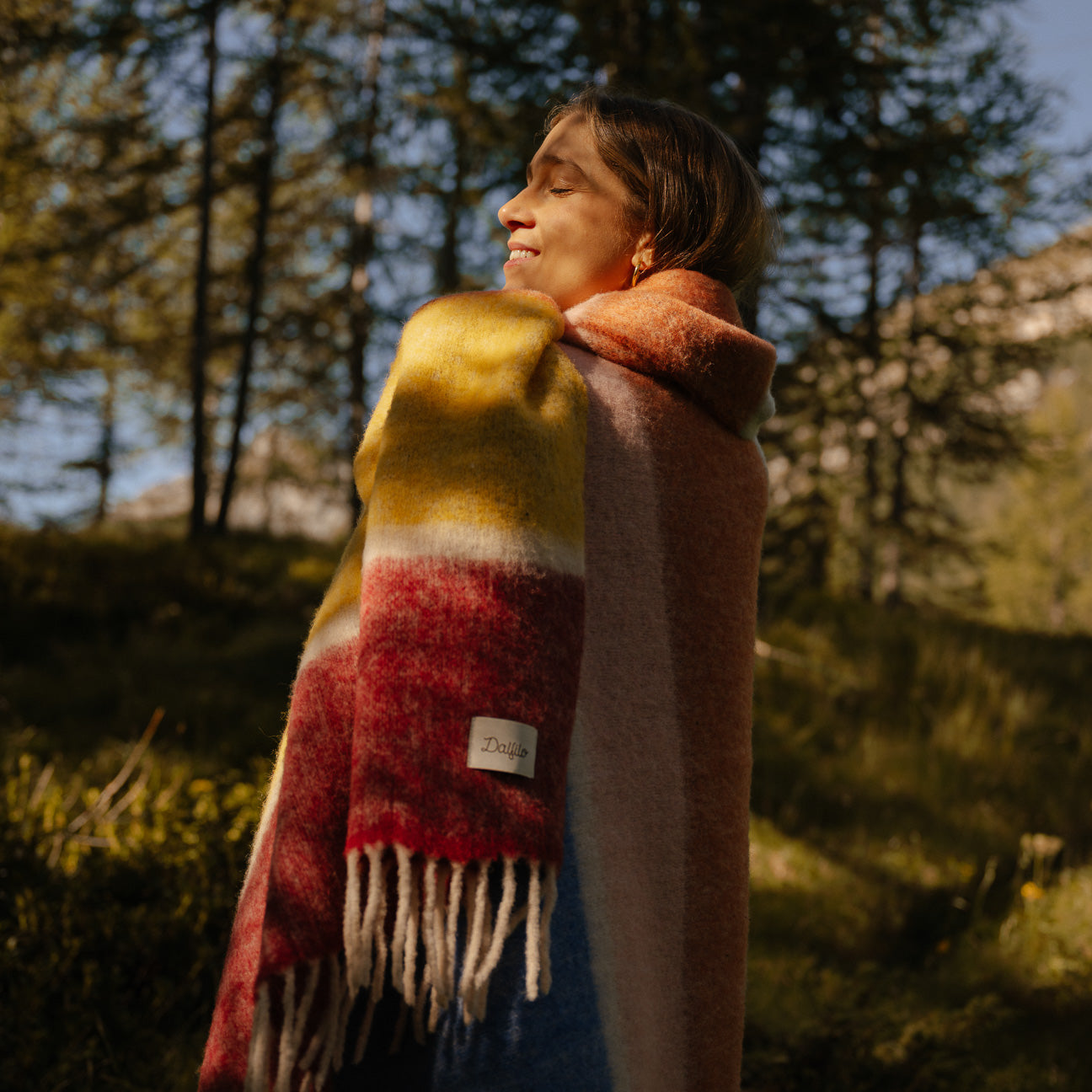 Aus der Verflechtung von acht Farbtönen entsteht die Dalfilo Alpaka-Wolldecke: eine leichte Faser, die selbst die kältesten Tage mit der Lebendigkeit der Farbe erwärmt.