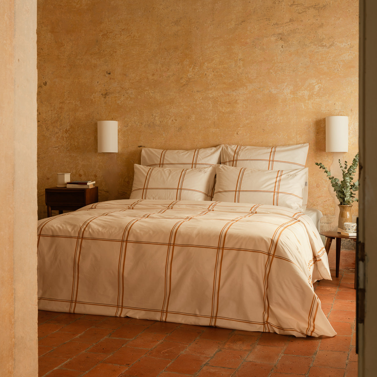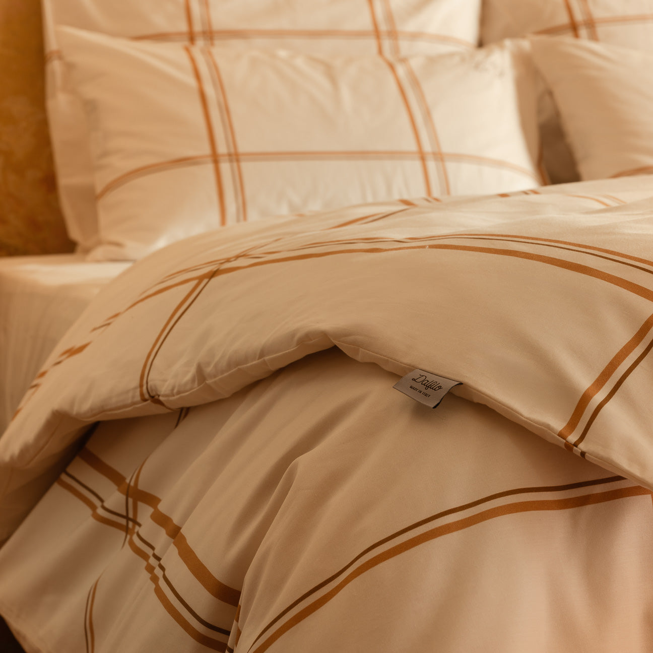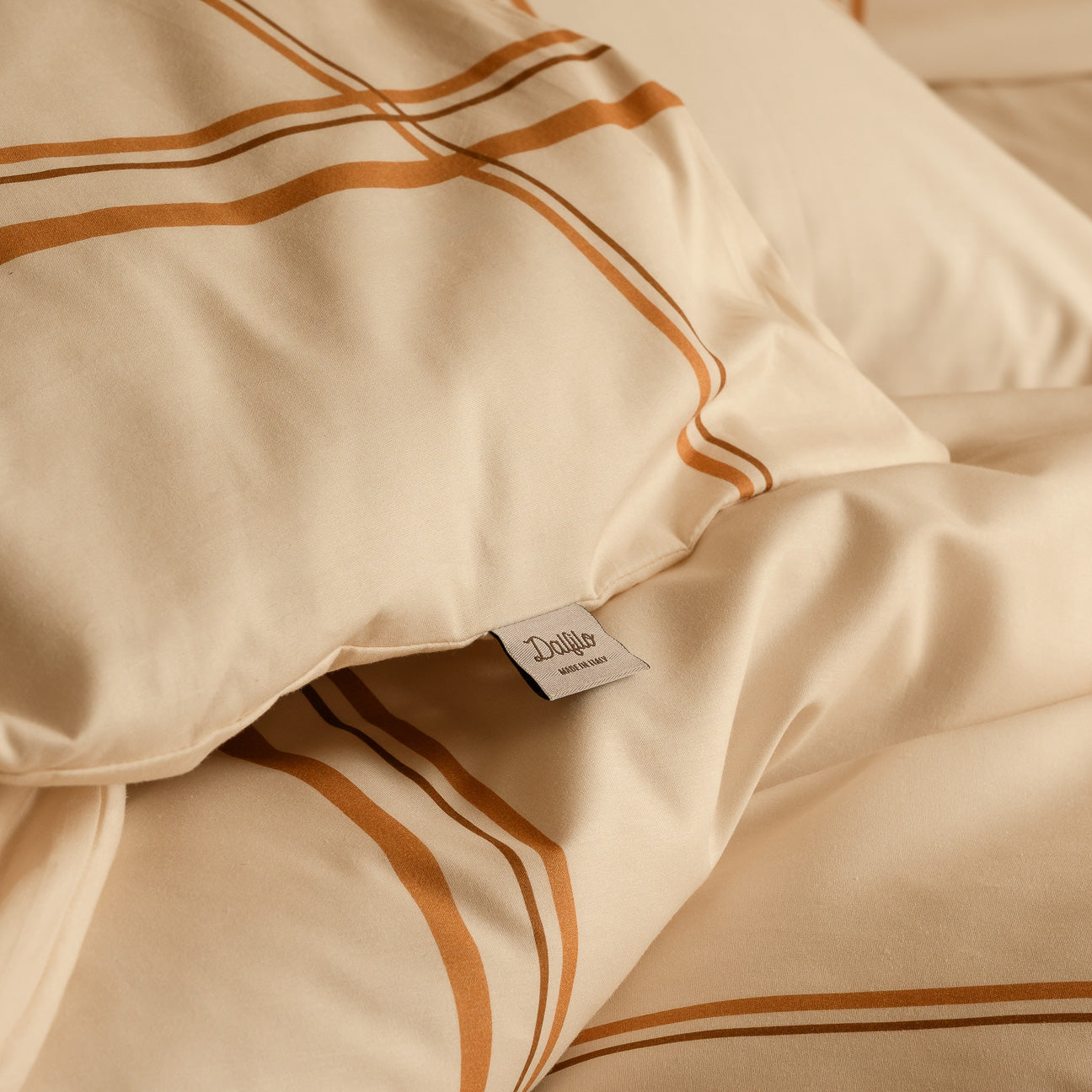 Unser Perkalstoff hat eine Fadendichte von 200 Fäden pro 2,5 cm² und besteht 100% aus Baumwolle. Durch seine Dichte ist er unglaublich weich und hält ein Leben lang. Durch sein mattes Finish ist der Stoff vielseitig und passt in jedes Schlafzimmer.