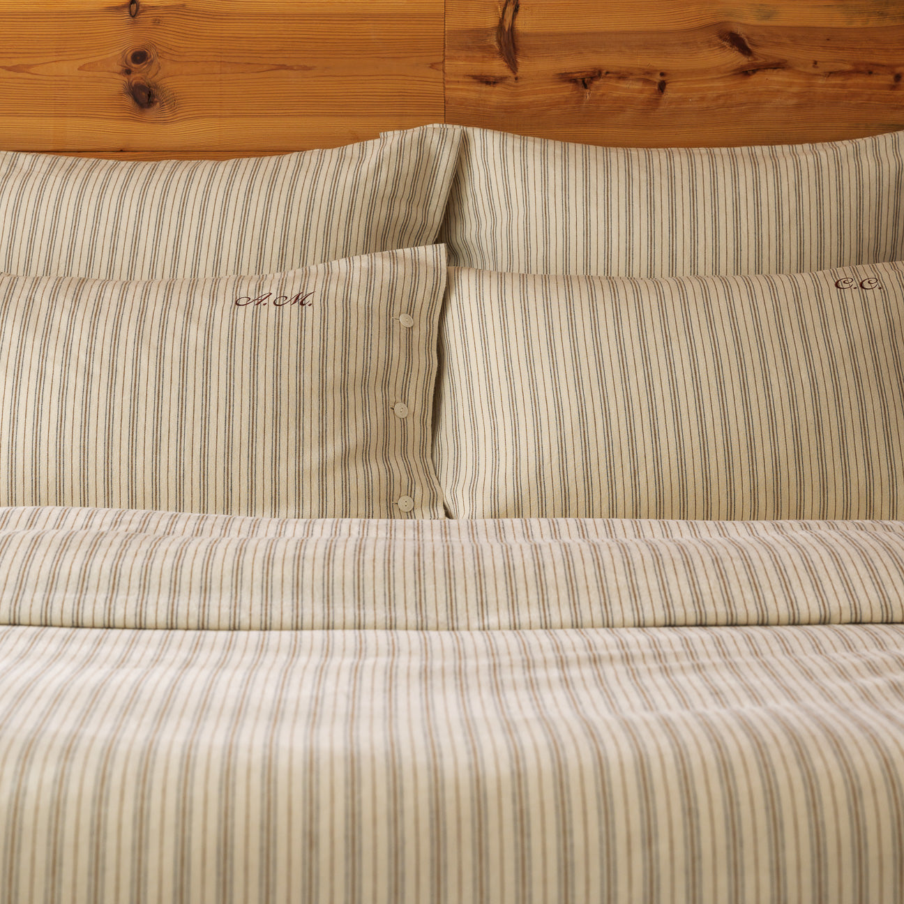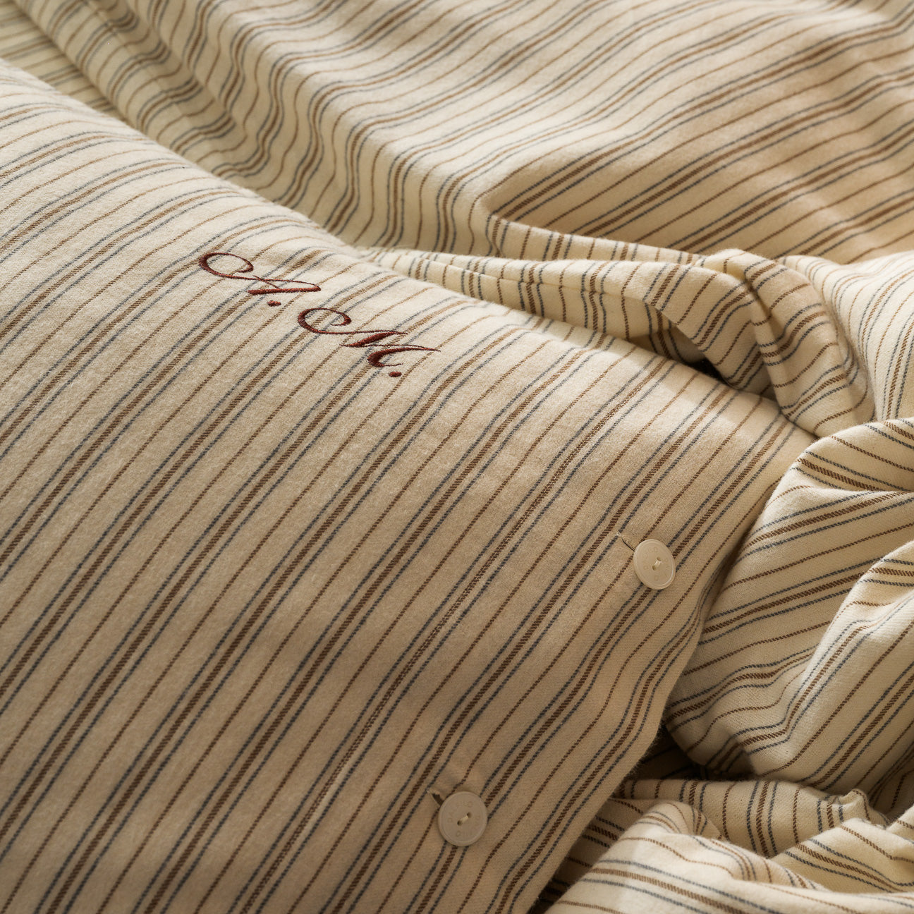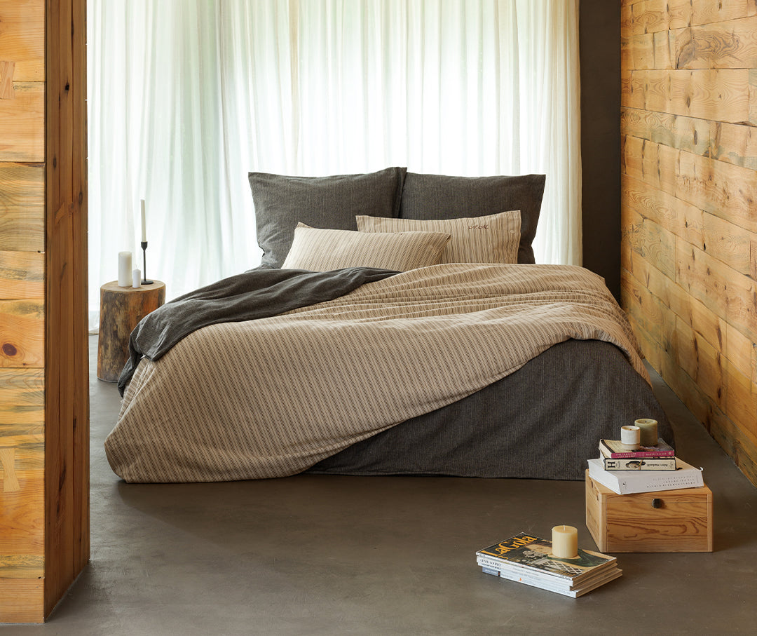Unsere Flanell-Designs vereinen Wärme mit zeitloser Eleganz. Die Variante Creme zeichnet sich durch edle Streifen in Braun und Blau aus, während Antrazit ein elegantes Fischgrätmuster zeigt, das durch die Kombination von cremefarbenen und anthrazitfarbenen Garnen entsteht. Beide Designs sind aus garngefärbtem Baumwollgewebe gefertigt und garantieren Farbtiefe und Langlebigkeit, die über Jahre hinweg Bestand haben.