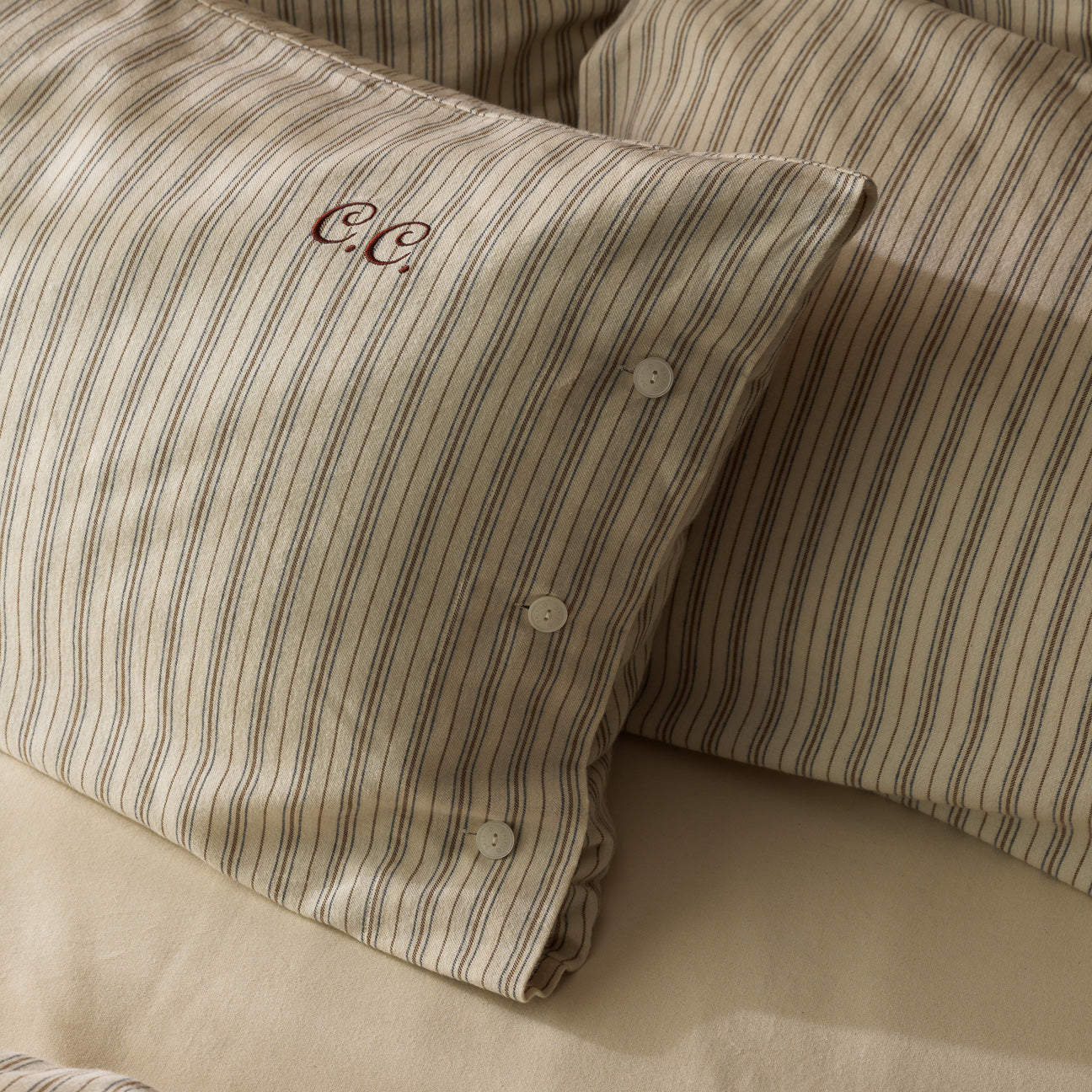 - 2 Kissenbezüge mit gravierten Knopfverschlüssen