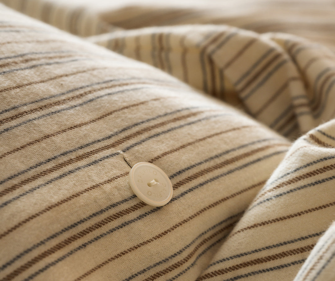 Mit unserem Flanell Bettwäsche-Set hol dich das Beste traditioneller Handwerkskunst in deinem Schlafzimmer. Jeder Schritt – von der Auswahl der Rohstoffe bis zur präzisen Verarbeitung – wird von unseren erfahrenen Handwerkern mit Hingabe ausgeführt. So erlebst du den wärmsten, kuscheligsten Schlaf, den der Winter zu bieten hat. Ein warmes Umarmen in jeder Faser.