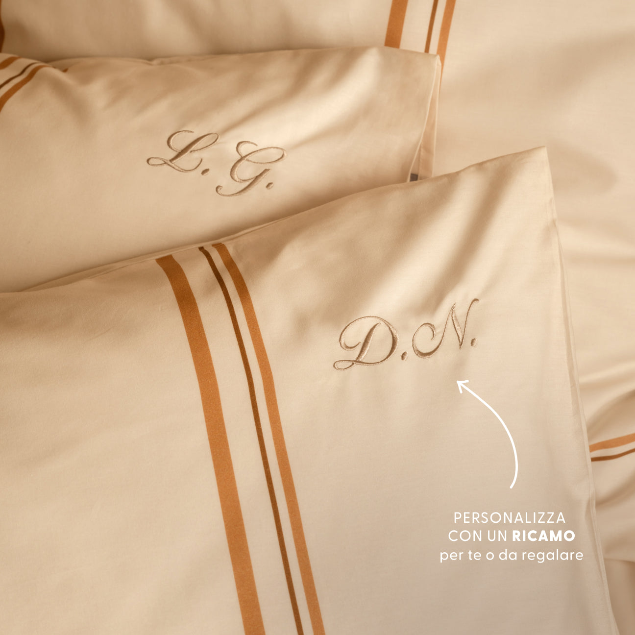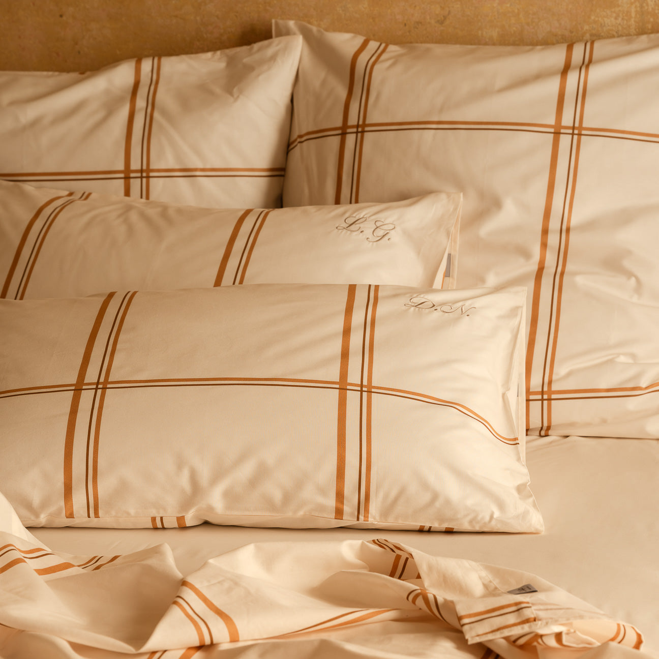 Personalisiere deine Bettwäsche mit deinen Initialen in der Garnfarbe und Schriftart deiner Wahl.