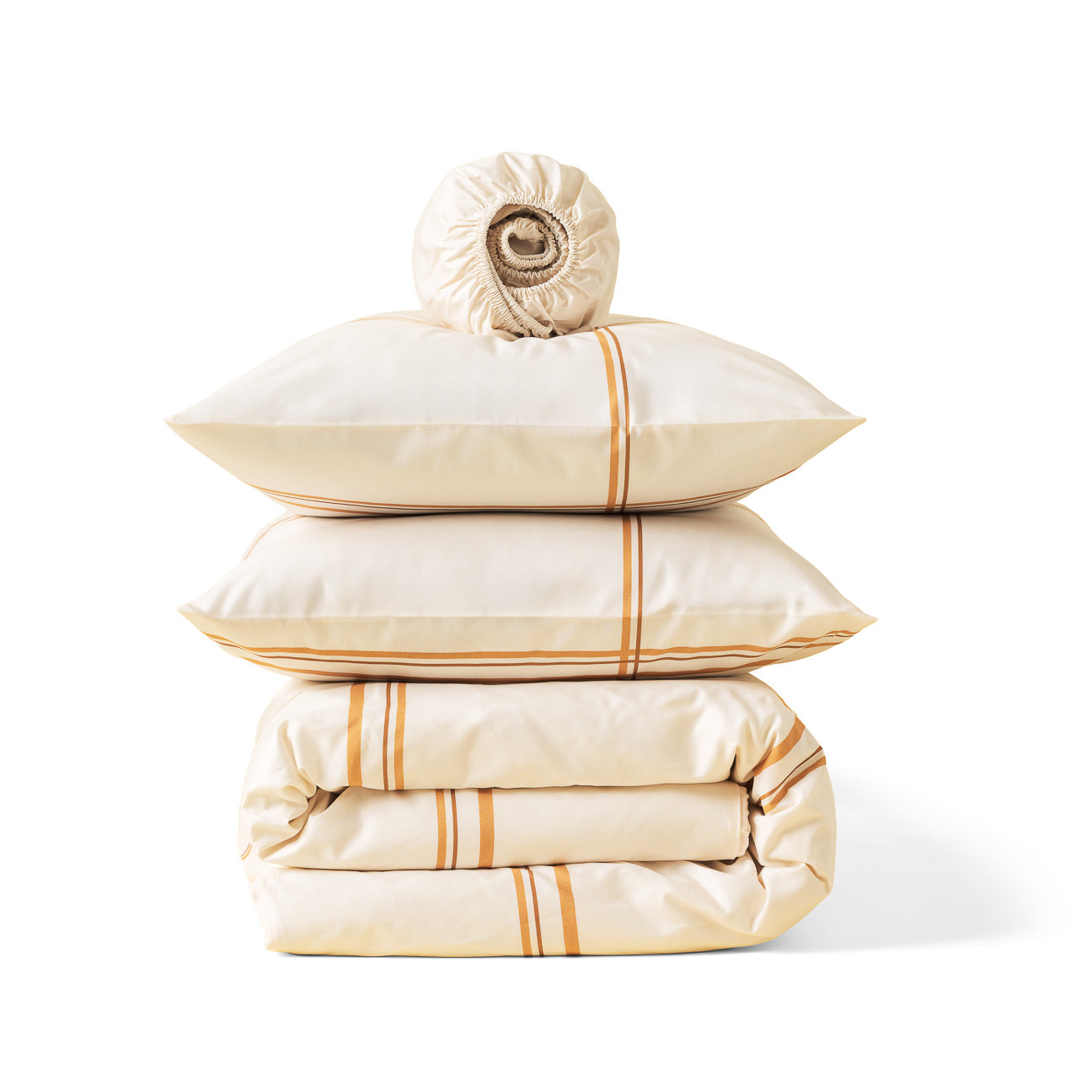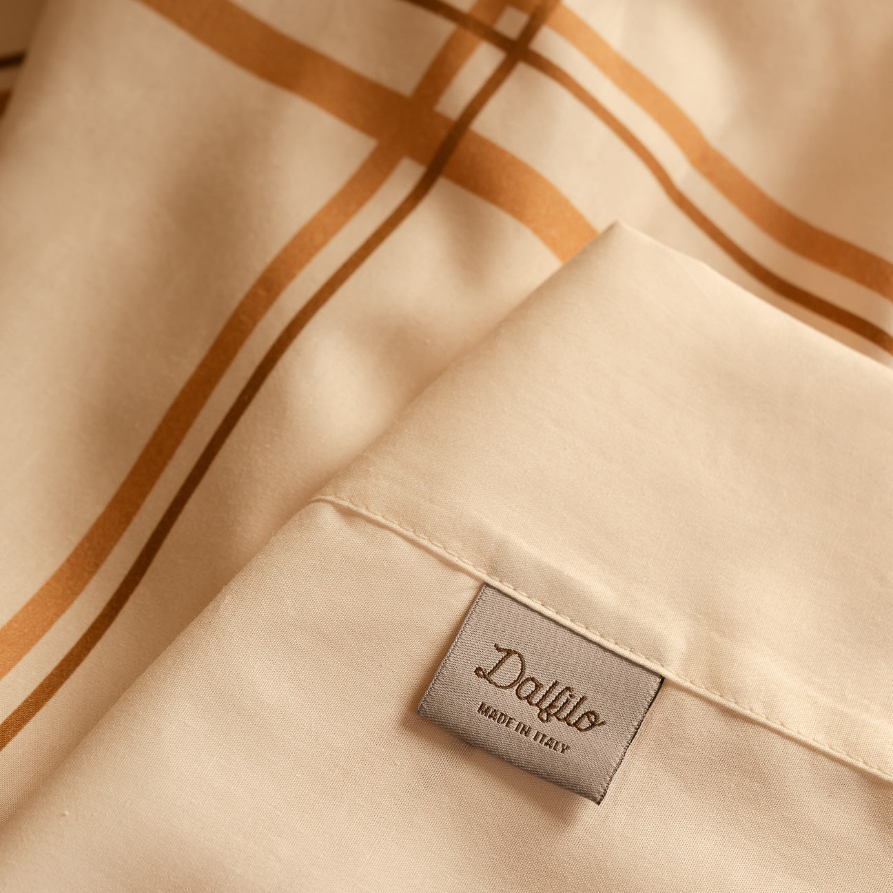 Unser Perkalstoff hat eine Fadendichte von 200 Fäden pro 2,5 cm² und besteht 100% aus Baumwolle. Durch seine Dichte ist er unglaublich weich und hält ein Leben lang. Durch sein mattes Finish ist der Stoff vielseitig und passt in jedes Schlafzimmer.