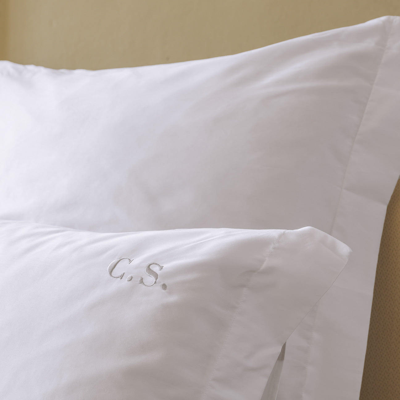 Die Buchstaben werden immer oben rechts gestickt und befinden sich bei Satin Kissenbezüge an der Seite ohne Volant.