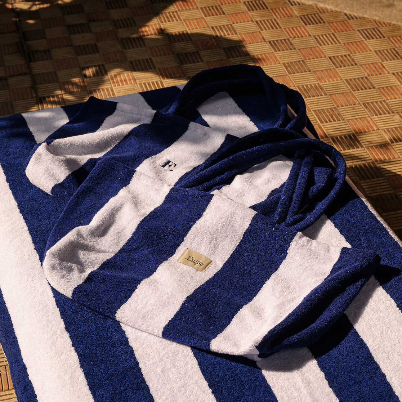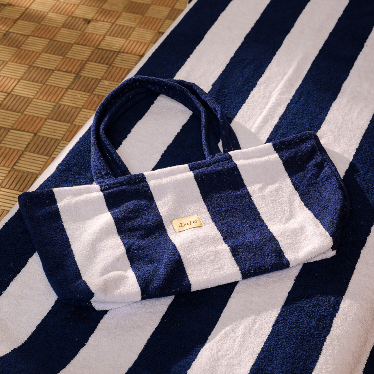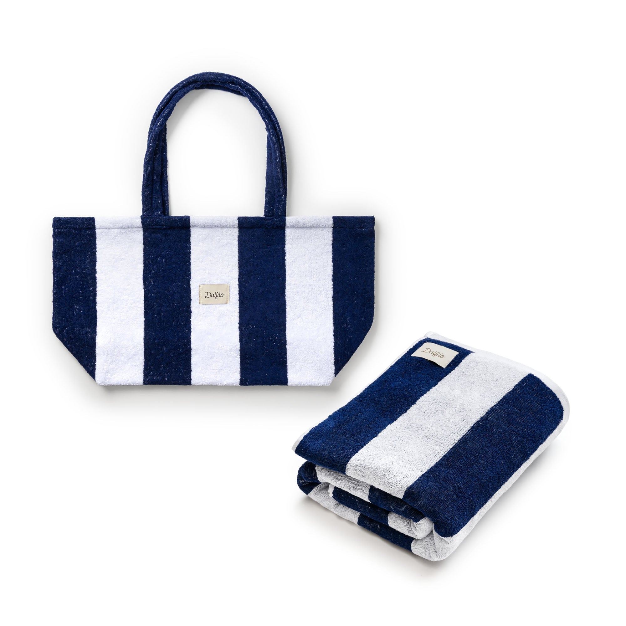 - Portofino-Strandtasche: 47 x 50 x 19 cm, ungefüttert, geräumig und leicht, mit farblich abgestimmten Frottee-Henkeln, Dalfilo-Etikett auf der Vorderseite und personalisierbarer Stickerei auf der Rückseite.