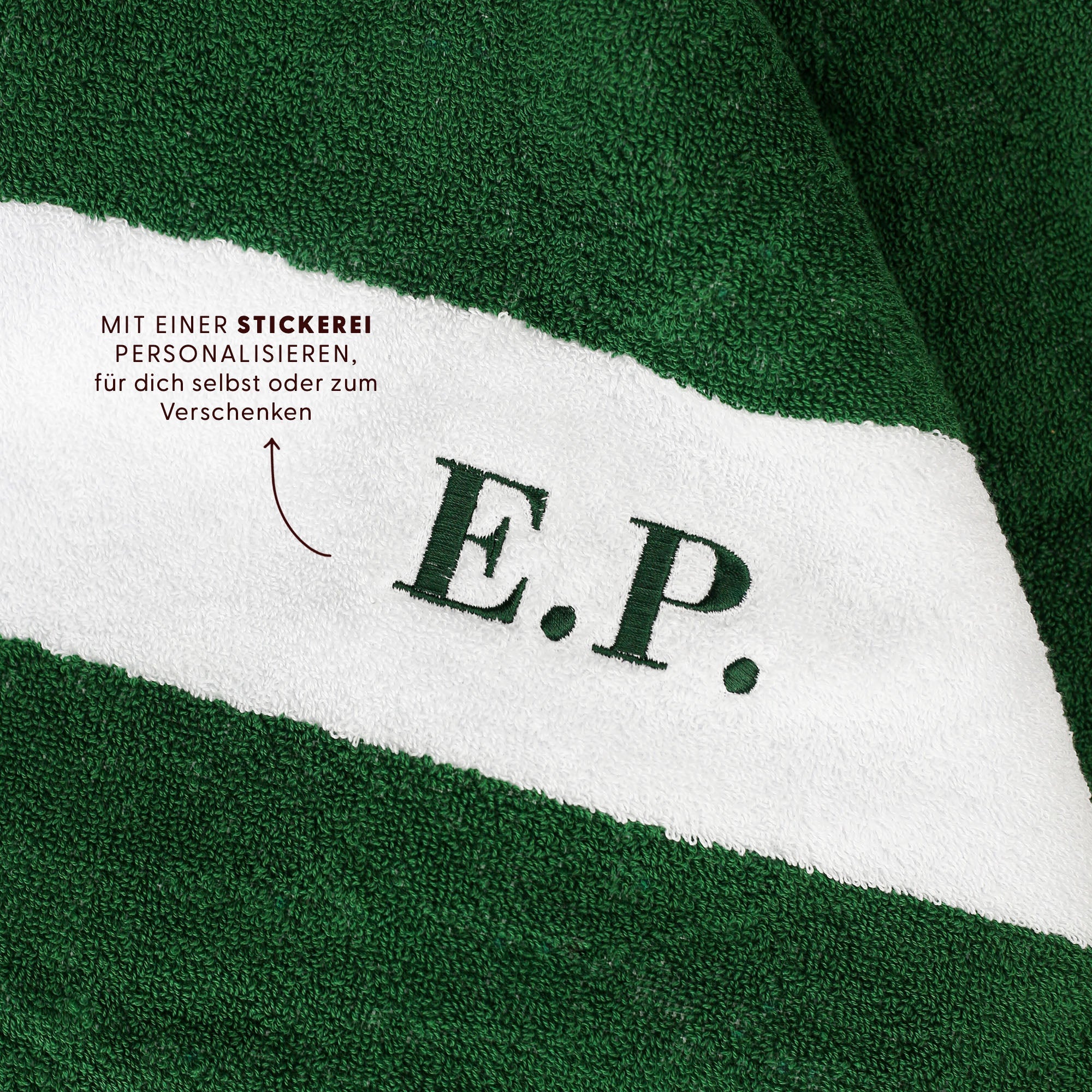 - Portofino-Strandtuch: 100 x 180 cm, aus reiner Baumwollfrottee (450 g/m²), mit 2 cm weißem Satin-Saum und Stickoption zur Personalisierung.