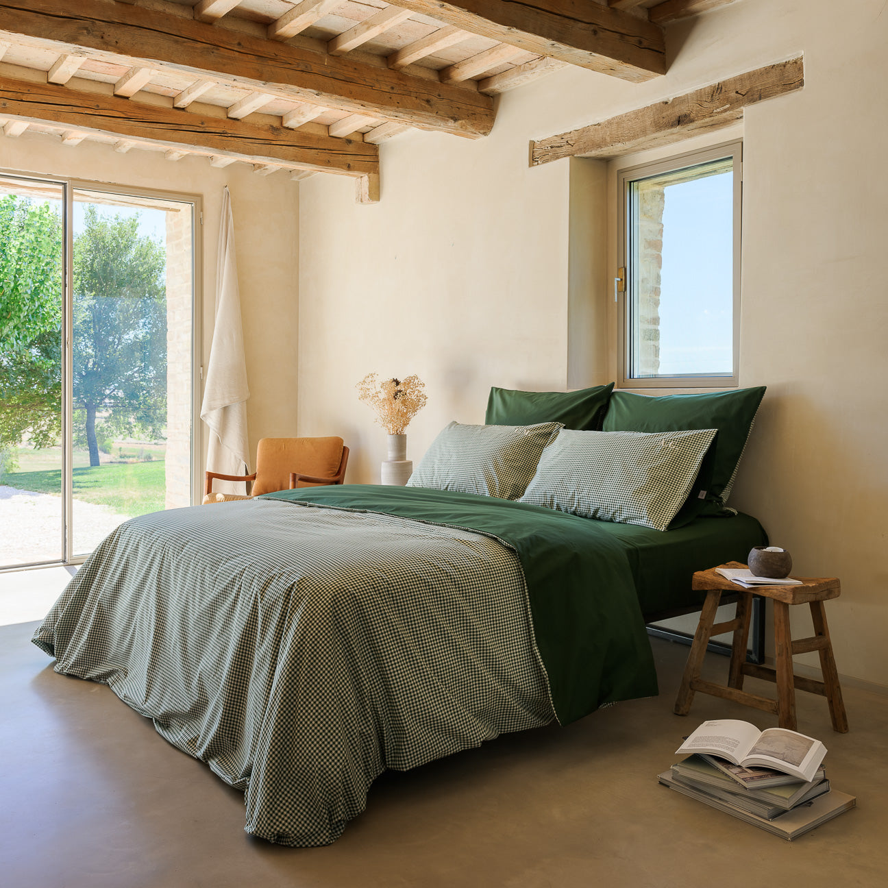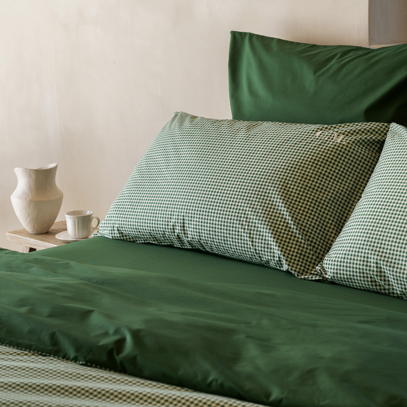 Unser Perkalstoff hat eine Fadendichte von 200 Fäden pro 2,5 cm² und besteht 100% aus Baumwolle. Durch seine Dichte ist er unglaublich weich und hält ein Leben lang. Durch sein mattes Finish ist der Stoff vielseitig und passt in jedes Schlafzimmer.
