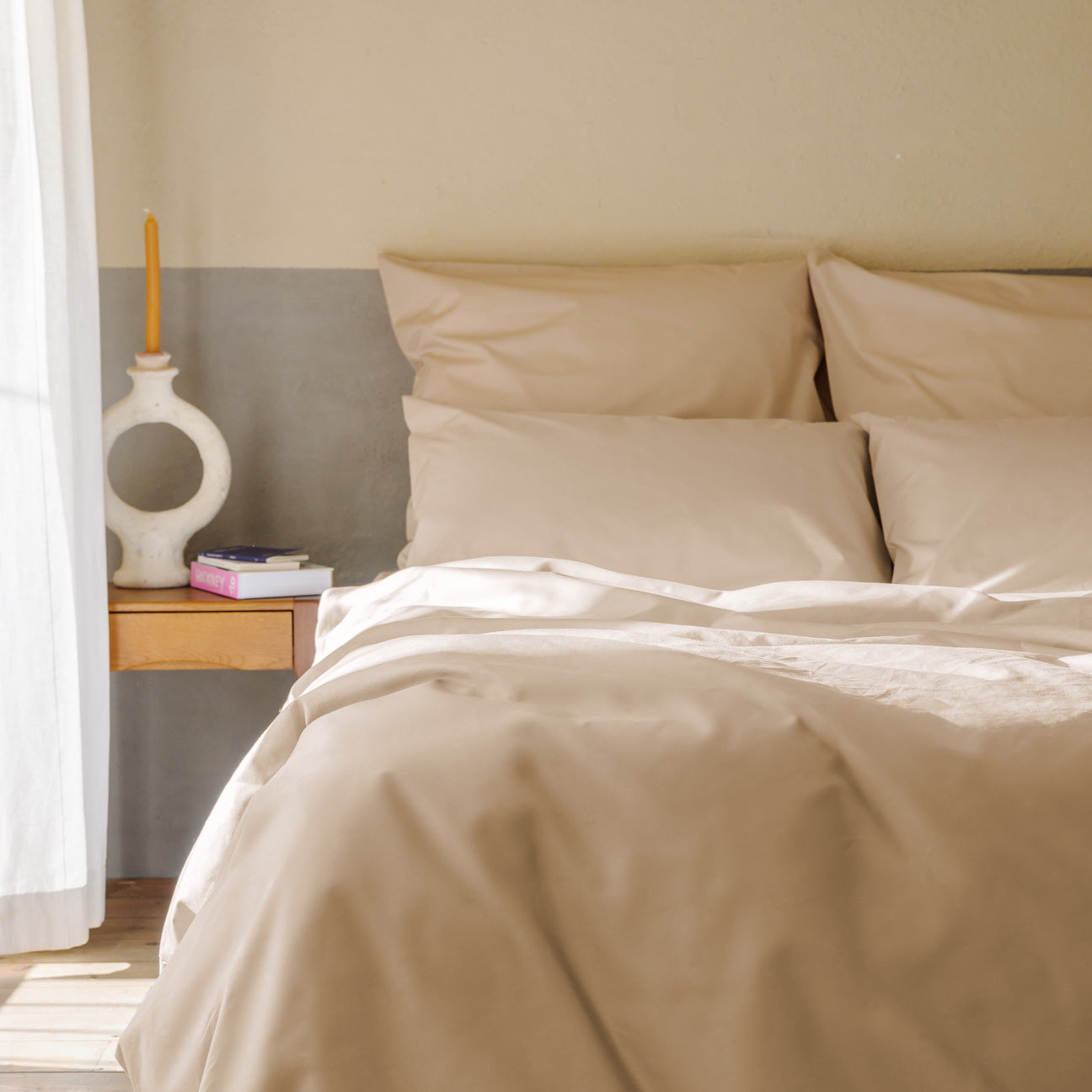Unser Perkalstoff hat eine Fadendichte von 200 Fäden pro 2,5 cm² und besteht 100% aus Baumwolle. Durch seine Dichte ist er unglaublich weich und hält ein Leben lang. Durch sein mattes Finish ist der Stoff vielseitig und passt in jedes Schlafzimmer.