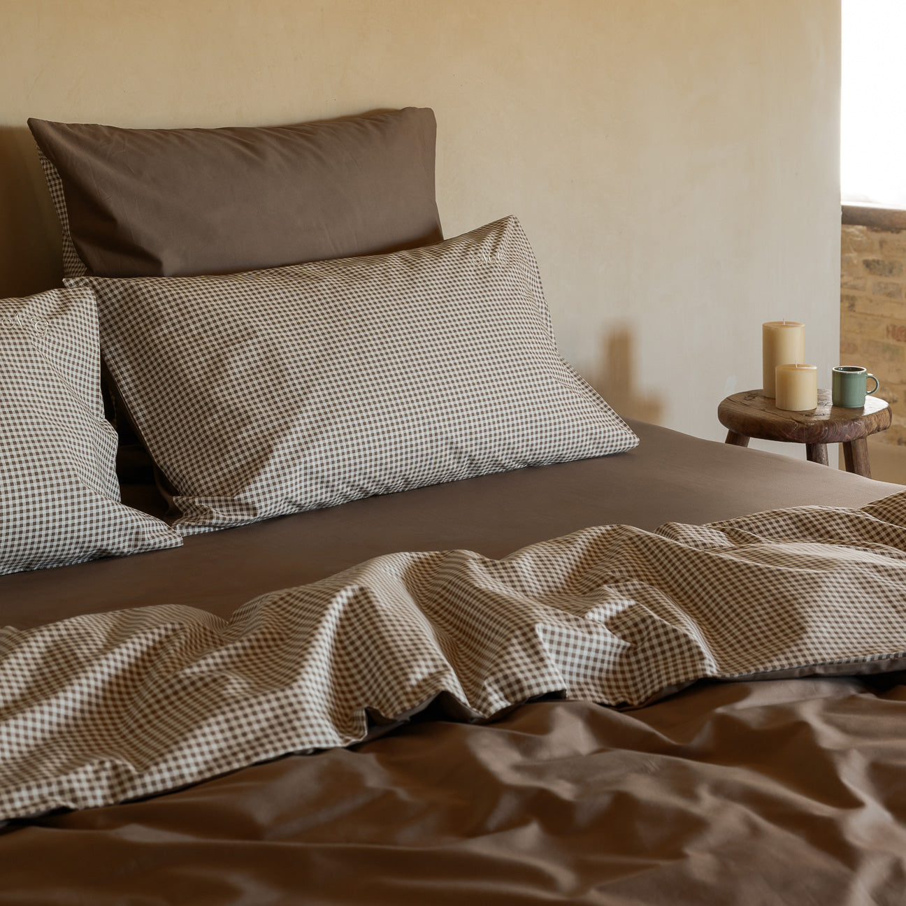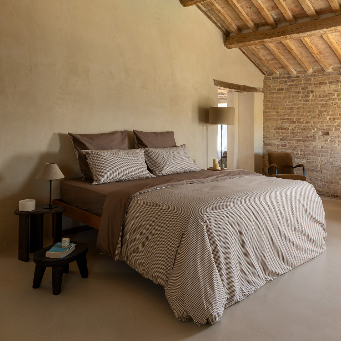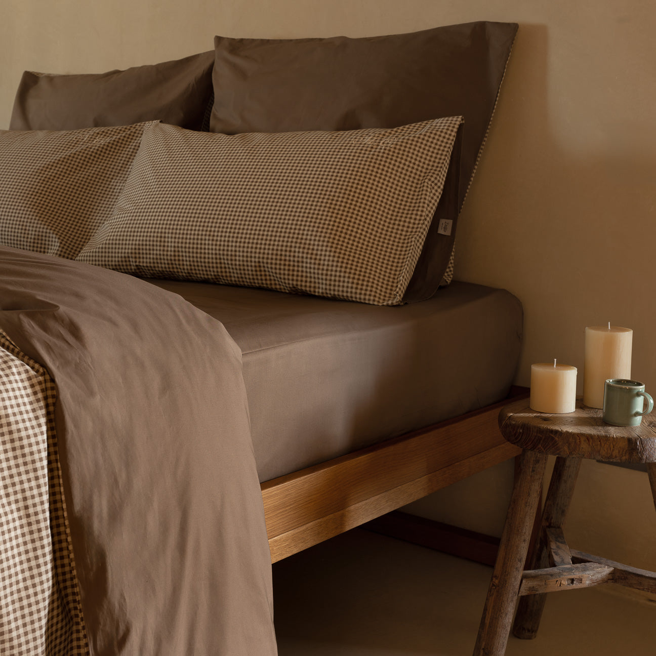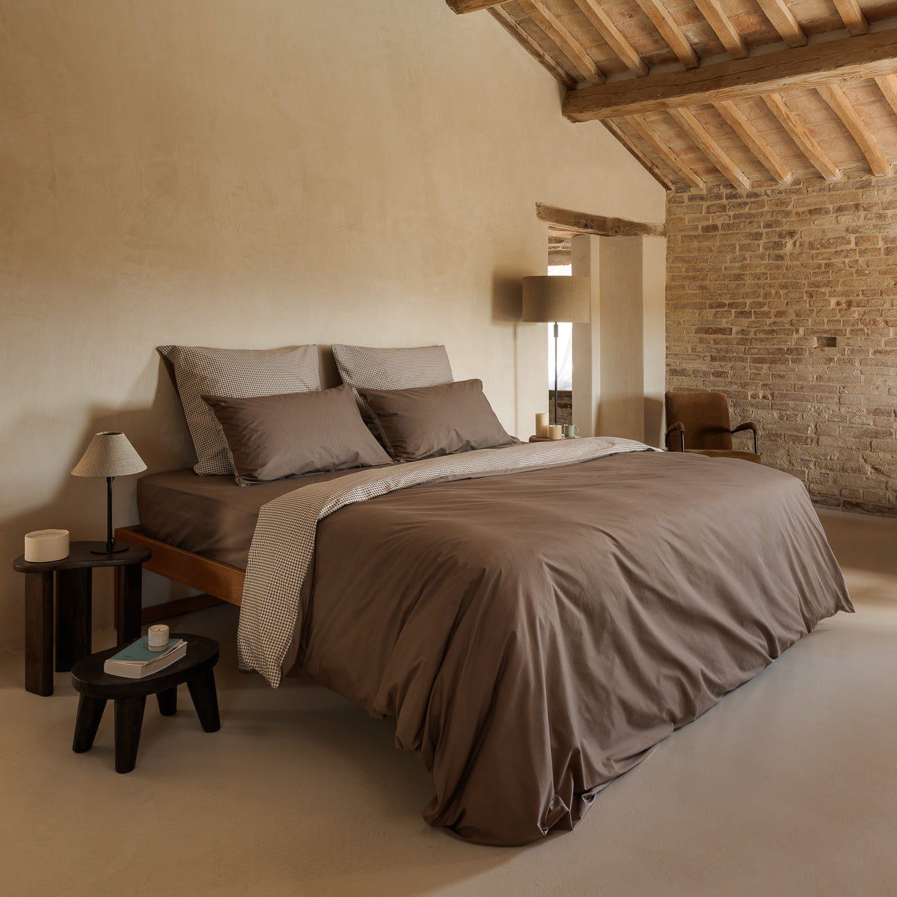 Unser Perkalstoff hat eine Fadendichte von 200 Fäden pro 2,5 cm² und besteht 100% aus Baumwolle. Durch seine Dichte ist er unglaublich weich und hält ein Leben lang. Durch sein mattes Finish ist der Stoff vielseitig und passt in jedes Schlafzimmer.