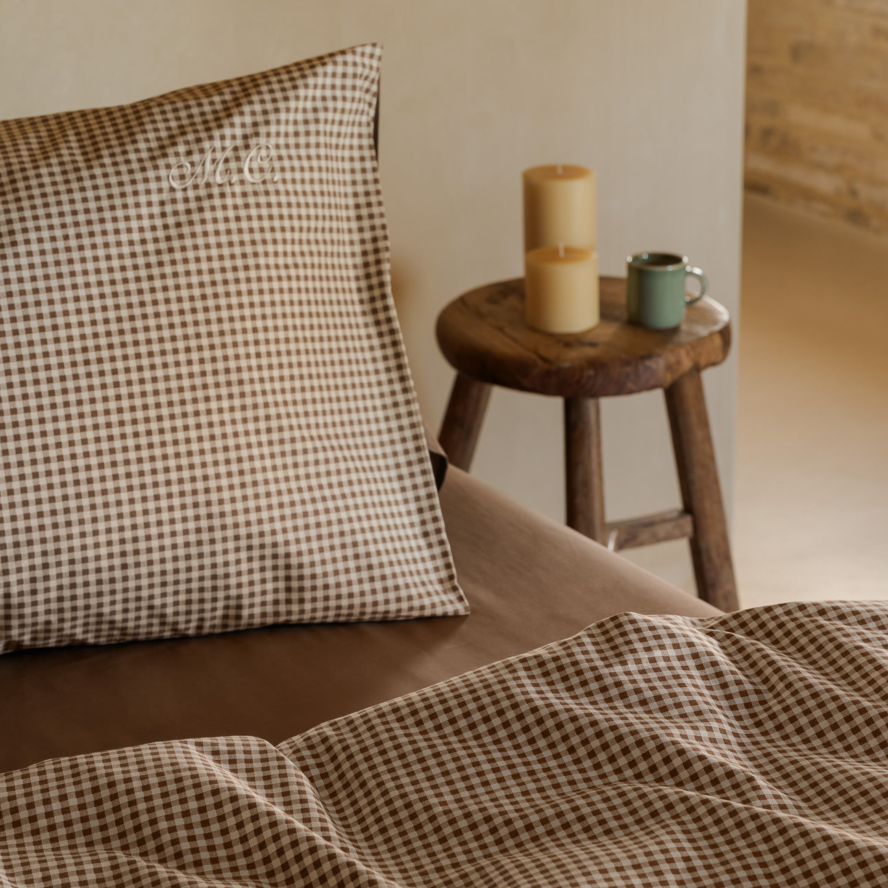 Personalisiere deine Bettwäsche mit deinen Initialen in der Garnfarbe und Schriftart deiner Wahl.